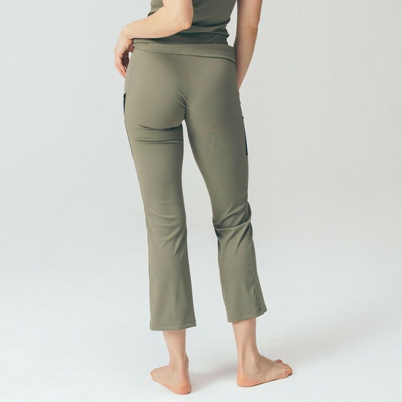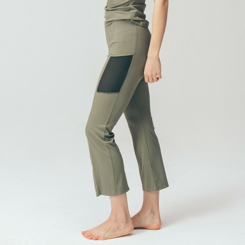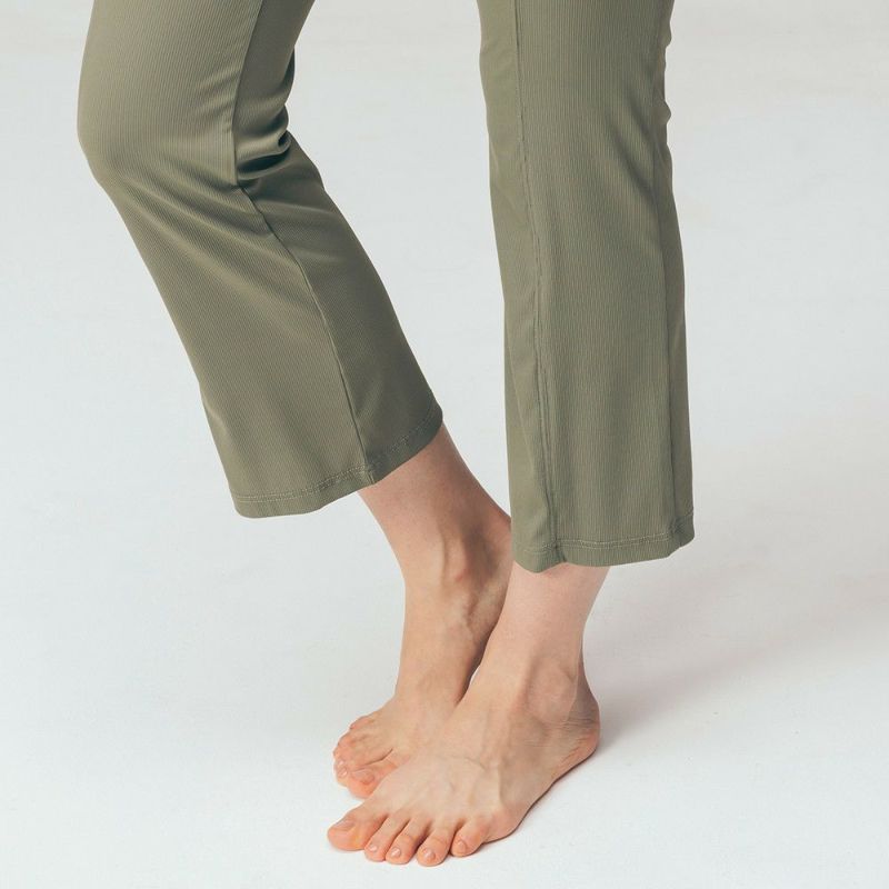 なめらかな肌触りのリブフレアパンツ。スリムなシルエットでスタイリッシュに見せてくれます。メッシュ使いのサイドポケットがアクセント。カーキは黒のメッシュを使用した配色デザインです。着心地がよいのでリラックスウェアとしても快適です。華やかなイエローと、大人ベーシックに着ていただけるカーキとネイビーの3色展開。デザインはDOUBLE STANDARD CLOTHINGが監修しています。