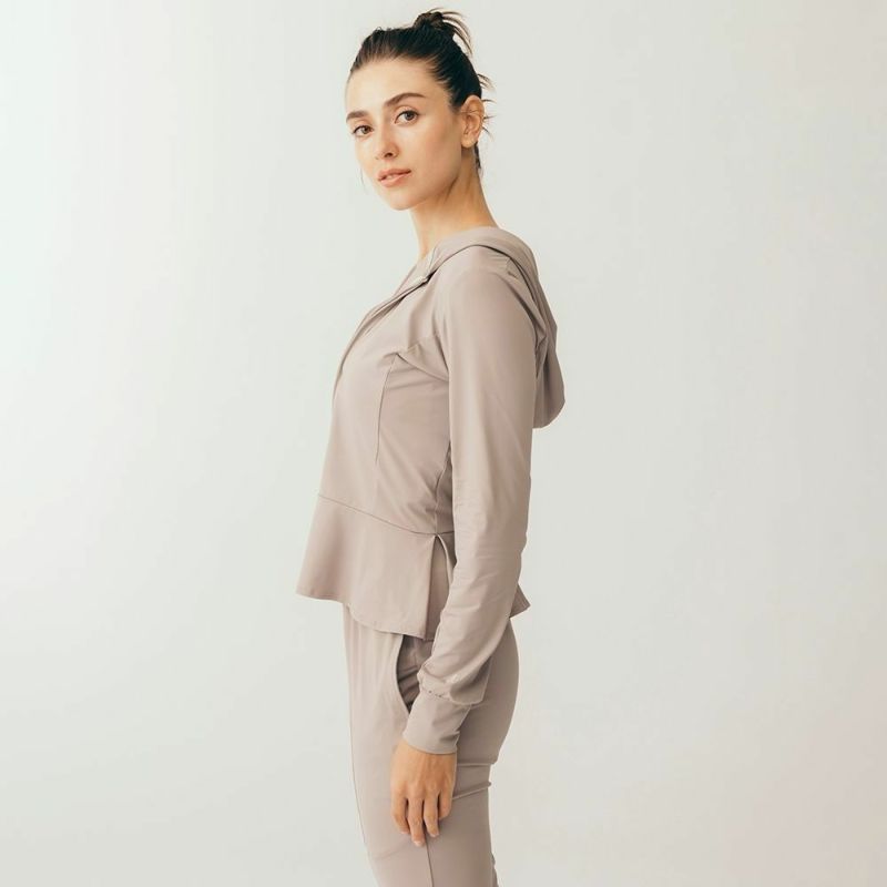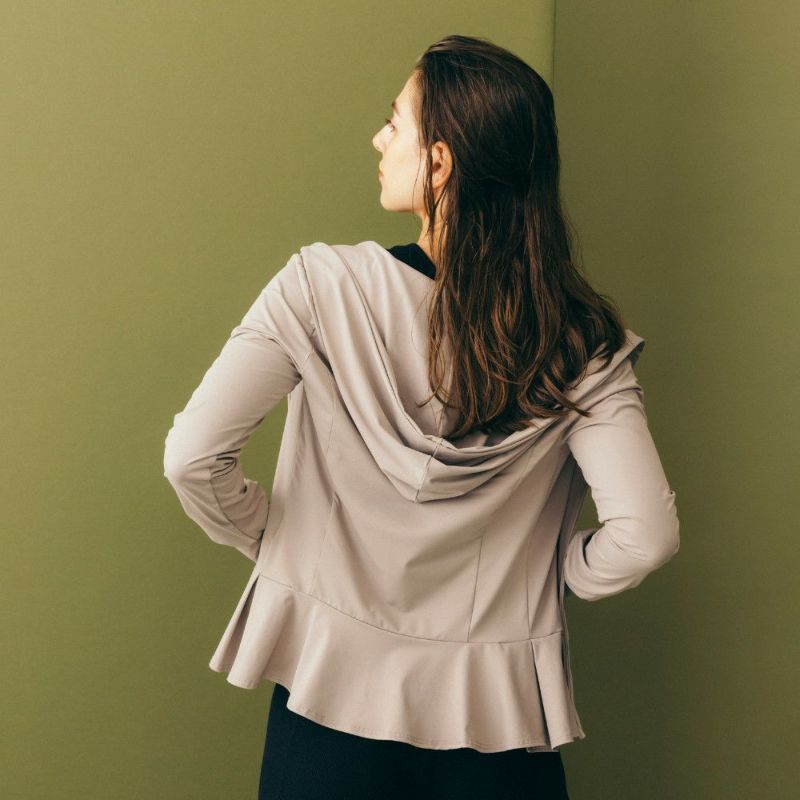 ペプラムデザインの裾がフェミニンなパーカー。なめらかでひんやりとした素材感が心地よくスポーツシーンに快適です。細身のコンパクトなシルエットでスリムな着こなしが可能です。デザインはDOUBLE STANDARD CLOTHINGが監修しています。