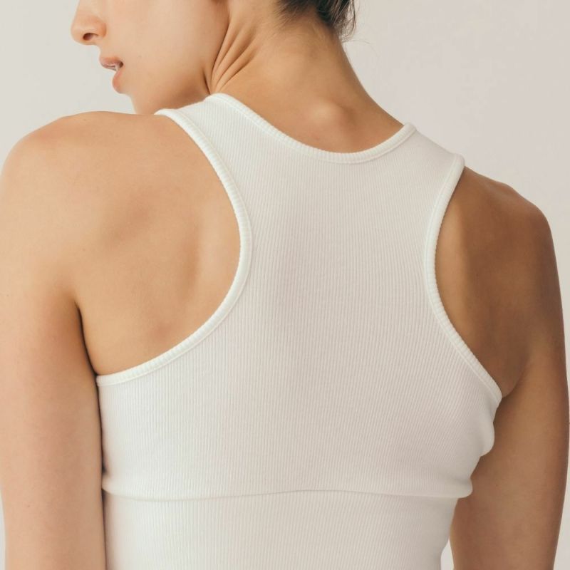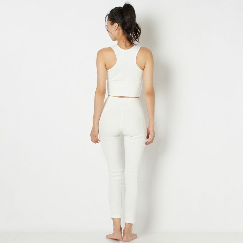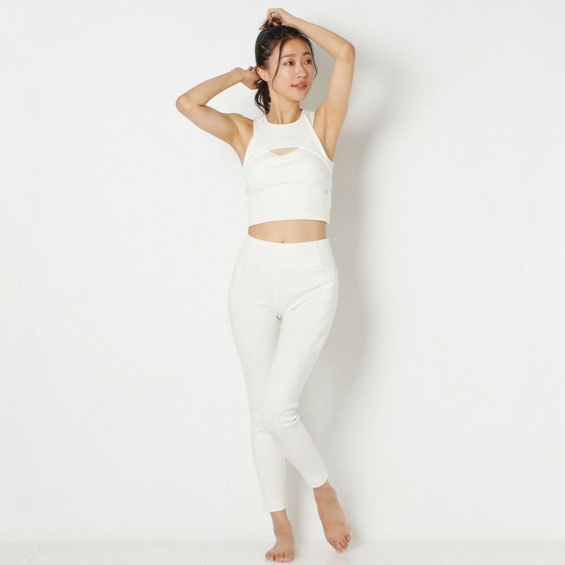 しっかりとした厚手のリブ素材を使用したカップ付きブラトップ。胸元あきがアクセントになり、少し長めの丈感でお腹周りをカバーできます。ストレッチが効いているのでソフトで快適な着心地。厚みのある生地感で肌寒い時期にはあたたかさも感じられます。常温ヨガやリラックスウェア、普段のコーディネートに取り入れてデイリー使いにもおすすめです。デザインはDOUBLE STANDARD CLOTHINGが監修しています。