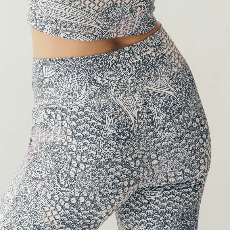 クロスデザインがウエストを美しく見せてくれるリジーオリジナルのプリントレギンス。柔らかく伸びのよいストレッチ素材でなめらかな着心地です。淡いピンクとベージュの色合いが優しい、ニュアンストーンのアラベスク柄プリント。