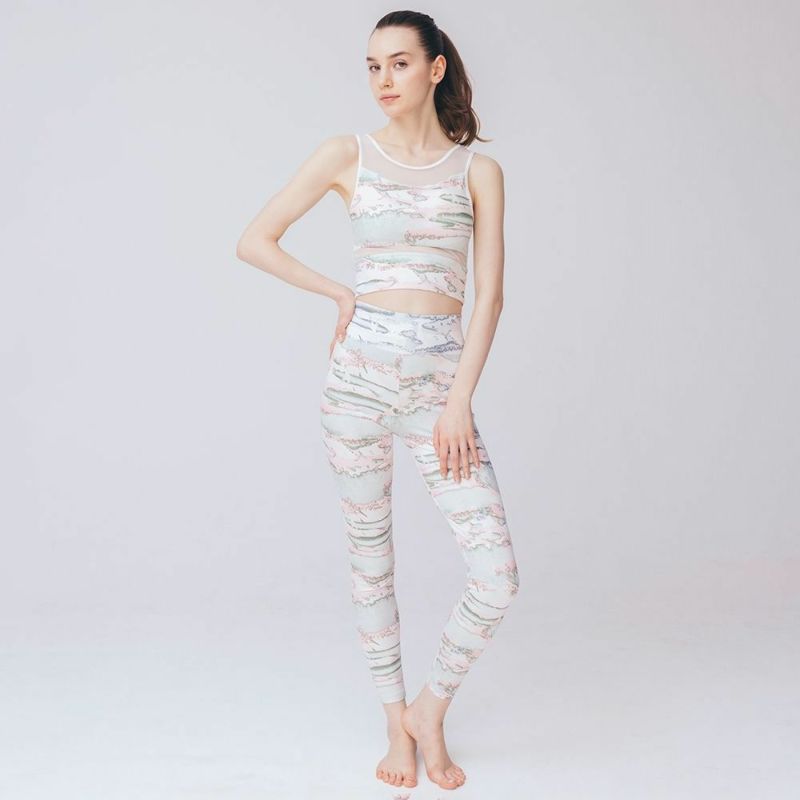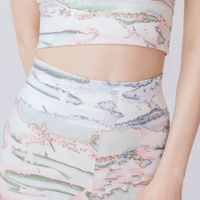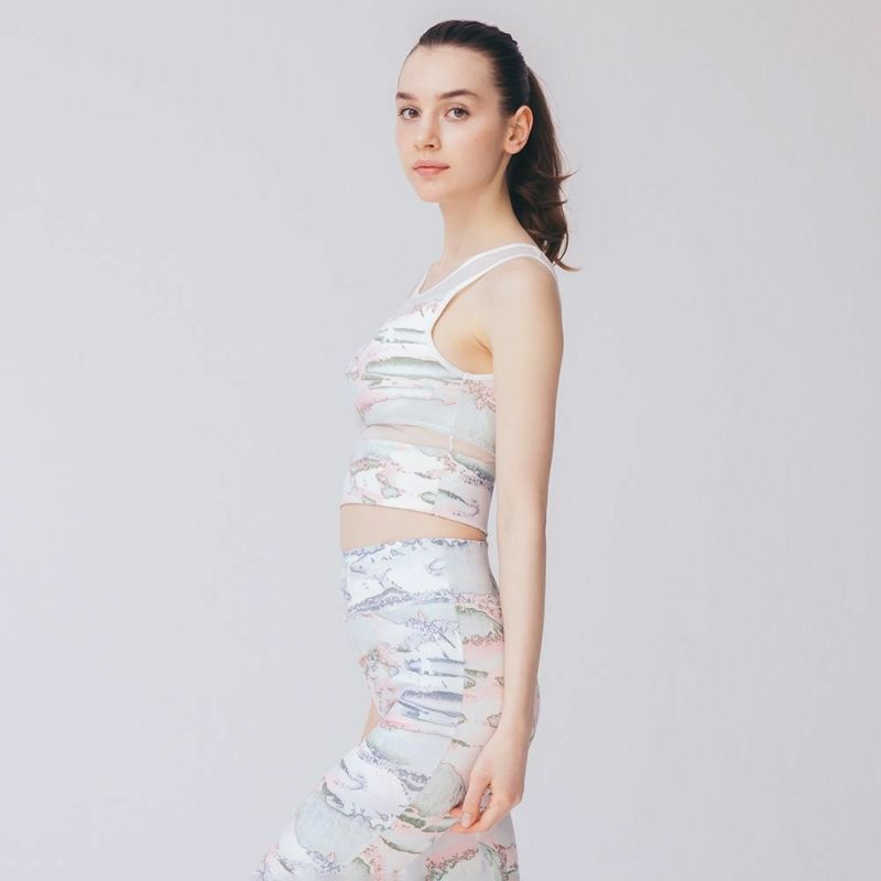 チュール切替がシアーなプリントブラトップ。しっかりとお腹までカバーしてくれる長め丈です。露出は控えつつ、チュールの透け感で程よい肌見せが叶います。ニュアンス感のあるパステルピンクが春らしいミスト柄プリント。