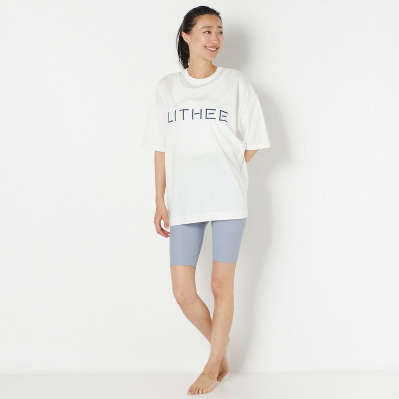 LITHEEロゴプリント入りのビッグTシャツ。ロゴは立体感のある発泡プリント。生地はしっとりした柔らかな風合いが着心地のよいコットン素材です。お尻まで隠れる丈感なのでレギンスの上に着て外出にもおすすめです。デザインはDOUBLE STANDARD CLOTHINGが監修しています。