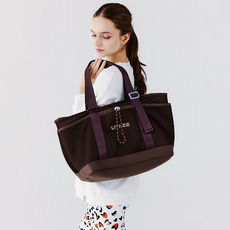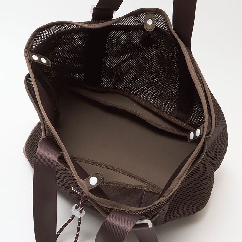 メッシュ素材の軽量バッグ。重さを感じない軽量素材で、ポケットがたくさんあるので持ち運びに便利なアイテムです。付属でおそろいのポーチ付きなのも嬉しいポイント。デザインはDOUBLE STANDARD CLOTHINGが監修しています。