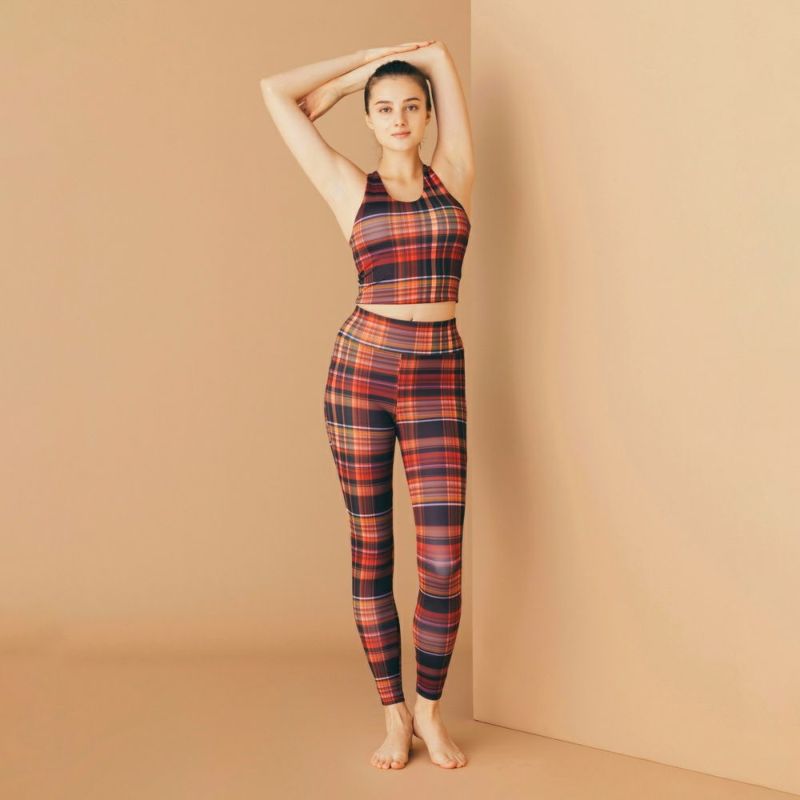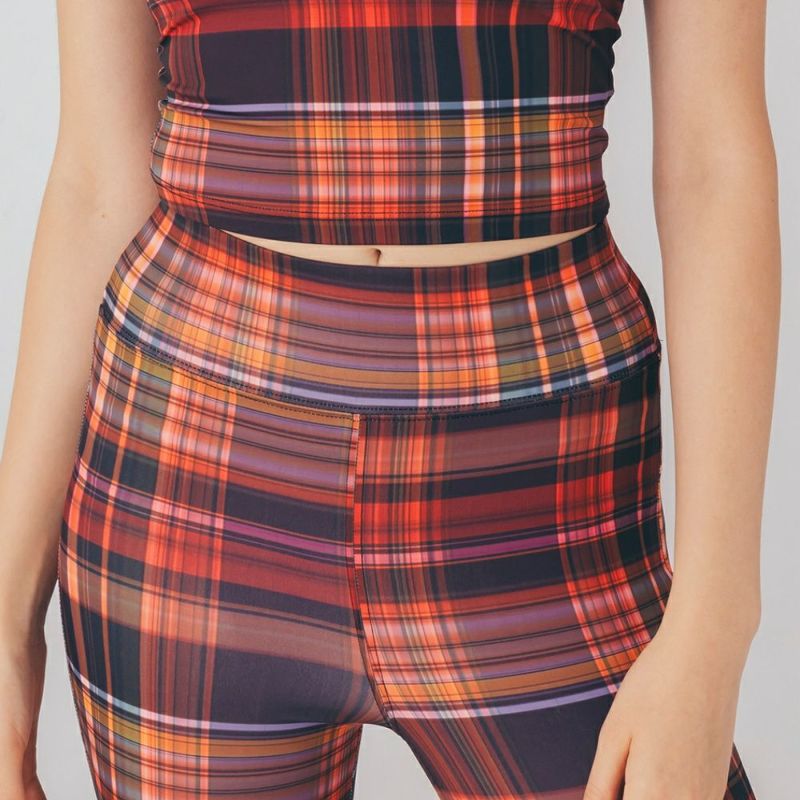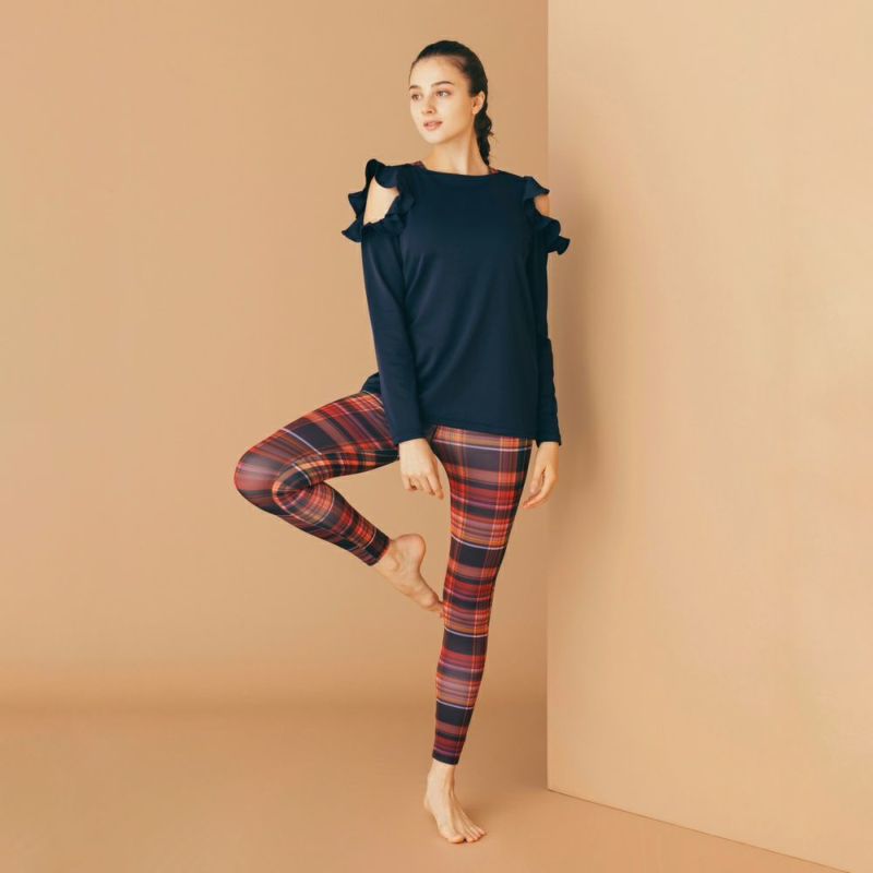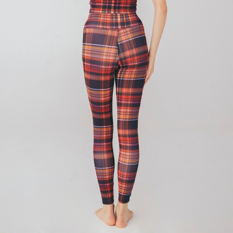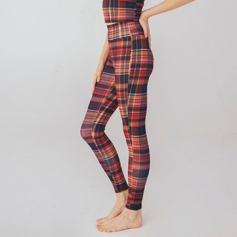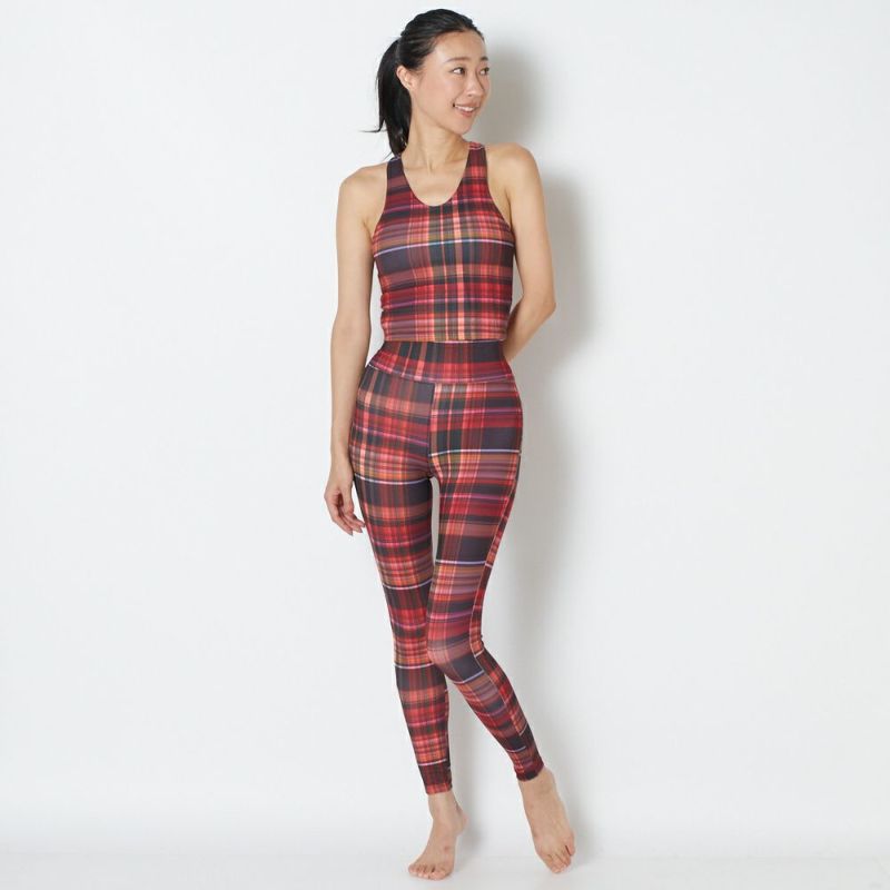 秋らしいチェック柄のプリントレギンス。鮮やかなレッドがコーディネートのアクセントになり1枚で主役になります。伸びのよいストレッチ素材でなめらかな着心地です。ウエストゴム入りでお腹周りを引き締めてくれます。