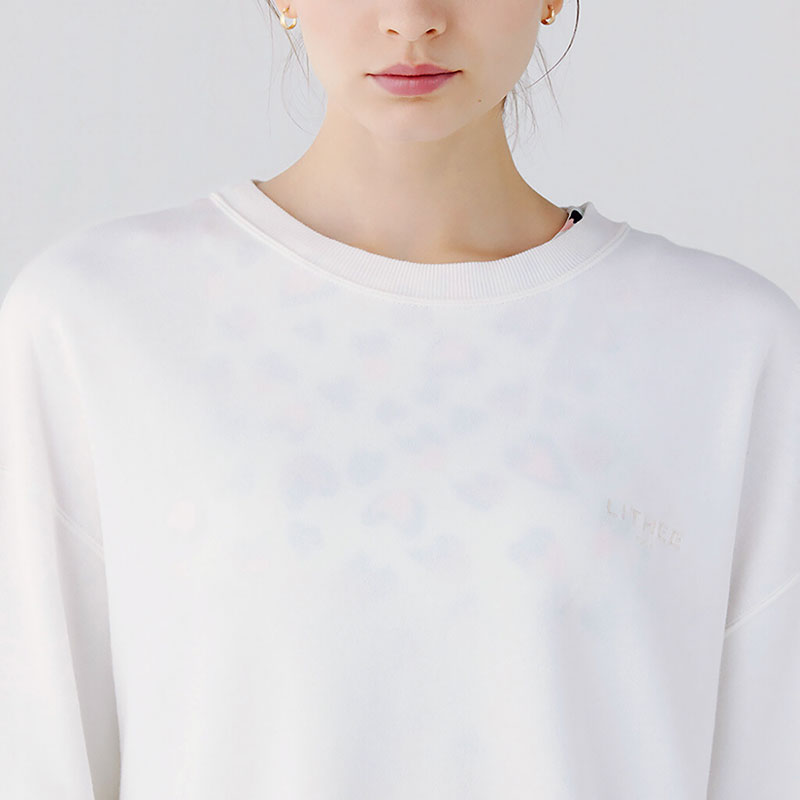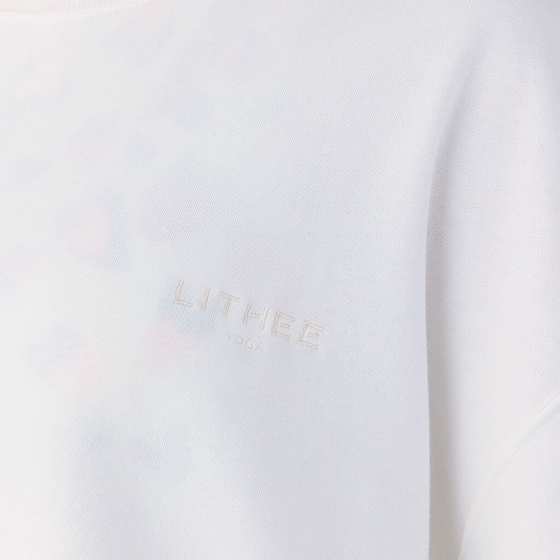 LITHEEロゴを刺繍した裏毛スウェット。清涼感のある強撚コットンの糸を使用した裏毛素材は、ヴィンテージ感のある柔らかな風合いで着心地抜群。薄手のパイルが涼しく快適に過ごせます。長めの丈感でお尻までカバーしてくれるので、レギンスの上に着て外に歩けるのも嬉しいポイントです。