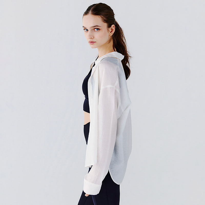 光沢感のあるテンセル素材を使用したシャツ。ふんわりとした柔らかなシアー素材で着心地がよく、光沢と縦の織が高級感があり上品なアイテムです。ナチュラルな風合いのワッシャー加工で、お洗濯やたたんだ時にシワがつきにくいのも嬉しいポイント。薄手の素材で涼しく、デイリーでの着用やヨガウェアの羽織としても活躍します。デザインはDOUBLE STANDARD CLOTHINGが監修しています。