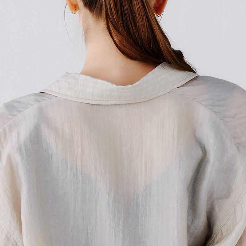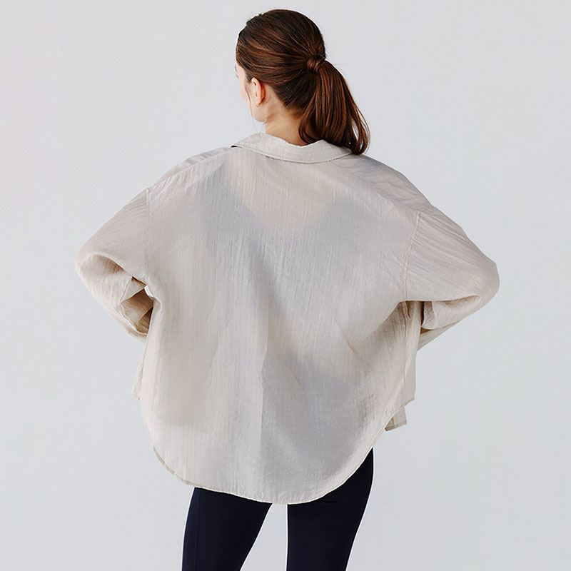 光沢感のあるテンセル素材を使用したシャツ。ふんわりとした柔らかなシアー素材で着心地がよく、光沢と縦の織が高級感があり上品なアイテムです。ナチュラルな風合いのワッシャー加工で、お洗濯やたたんだ時にシワがつきにくいのも嬉しいポイント。薄手の素材で涼しく、デイリーでの着用やヨガウェアの羽織として活躍します。デザインはDOUBLE STANDARD CLOTHINGが監修しています。
