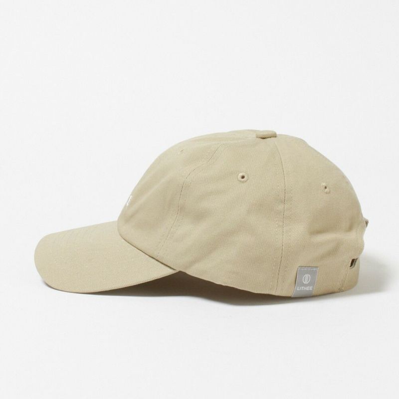 LITHEEのロゴを刺繍したコットンキャップ。デイリーにも使いやすいベーシックなキャップです。後ろのベルト部分でサイズ調節が可能です。