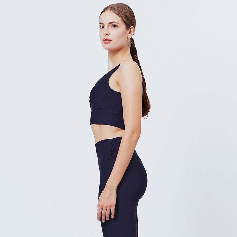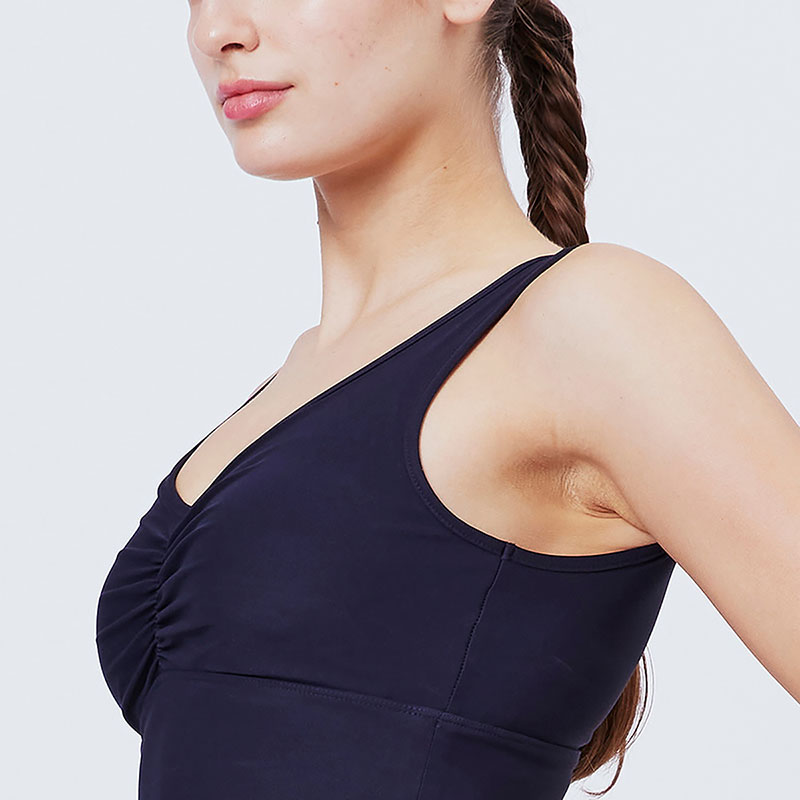 メリルライトハイテンション素材を使用したブラトップ。フロントのシャーリングが女性らしく、デコルテラインを美しく見せてくれます。マイクロファイバーならではの柔らかさ、快適な肌触りと着心地のよいストレッチ性が魅力。接触冷感機能がありひんやりと心地よく、ドライタッチな涼しい着用感です。