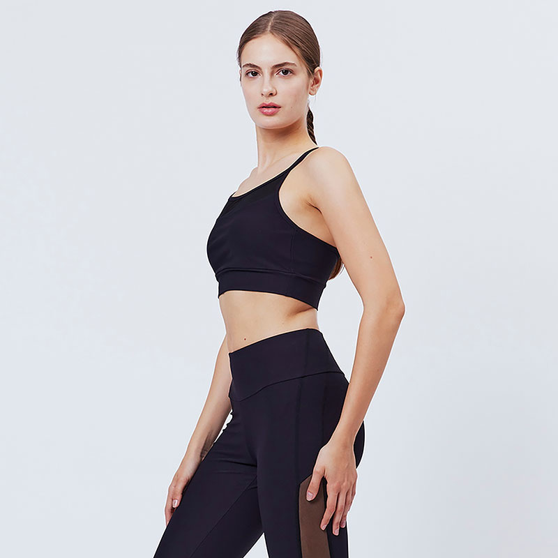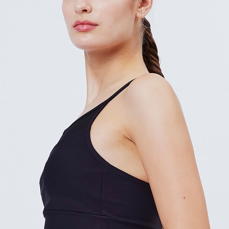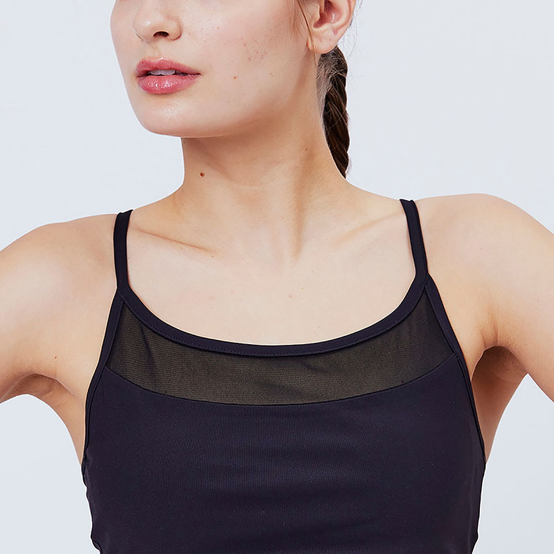 メリルライトハイテンション素材を使用したブラトップ。フロントのチュール切替が涼し気で、バックスタイルはエレガントな印象のストラップデザイン。マイクロファイバーならではの柔らかさ、快適な肌触りと着心地のよいストレッチ性が魅力。接触冷感機能がありひんやりと心地よく、ドライタッチな涼しい着用感です。