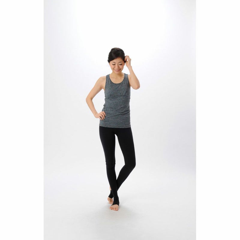 絶妙なニュアンスのミックスカラーがおしゃれ見えするタンクトップ。 ストレッチ性に優れた滑らかな肌触りの生地を使用した、ヨガストレッチにぴったりな一枚です。 シルエットにメリハリをつけてスタイルアップ効果を叶えてくれる、胸元のタックデザインもポイントです。