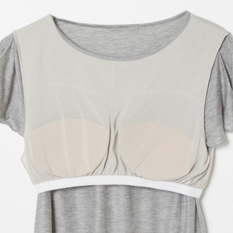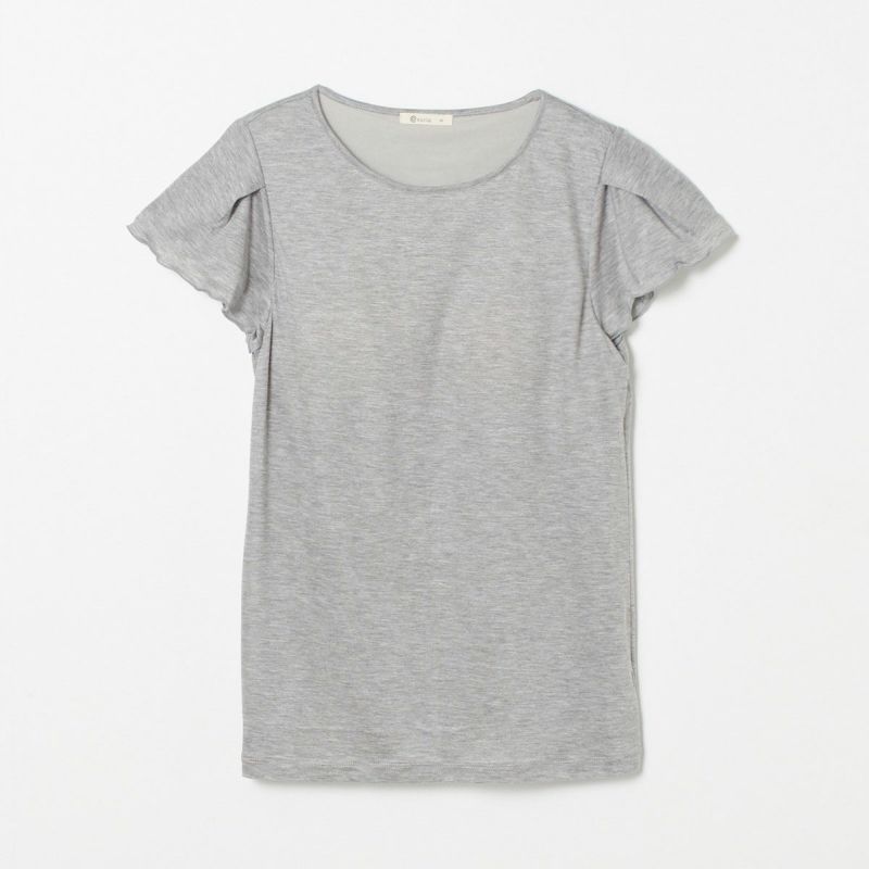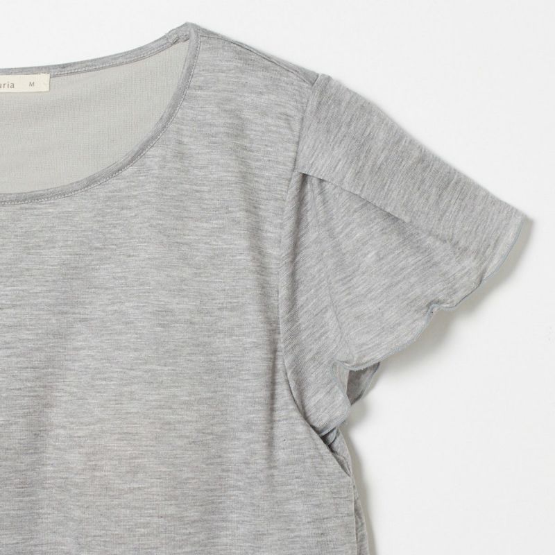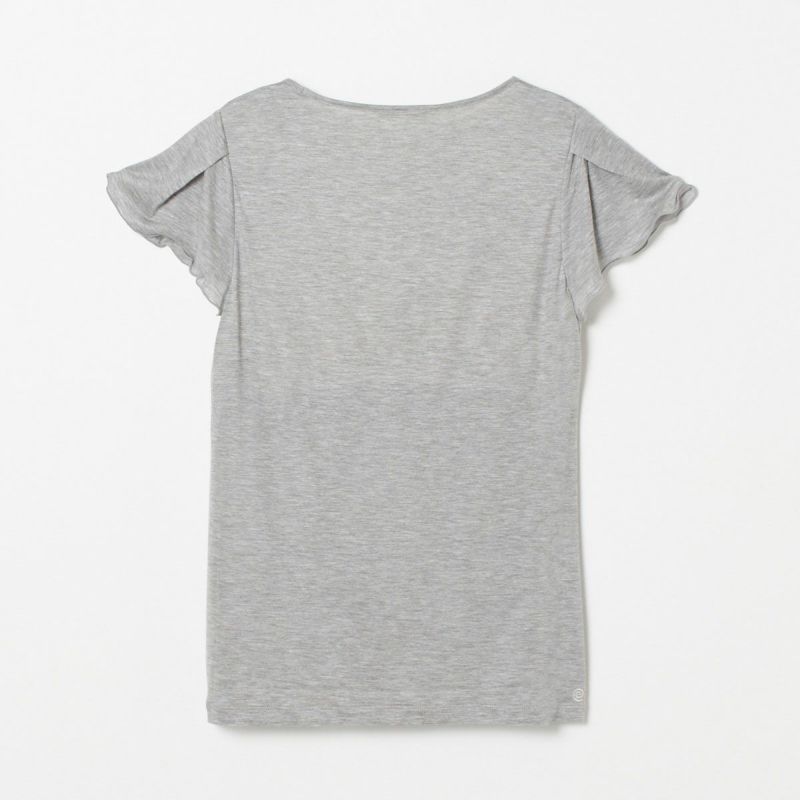 フリルスリーブがフェミニンなカップ付きトップス。薄手で微光沢感のあるテンセル生地で仕立てた、やわらかく着心地の良い一枚です。インナーブラ部分にはメッシュ素材の裏地がついているので、一枚でリラックスして着られます。パッドは取り外しが可能でお手入れが楽に行えるのも嬉しいポイント。