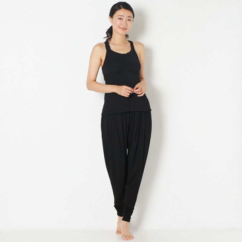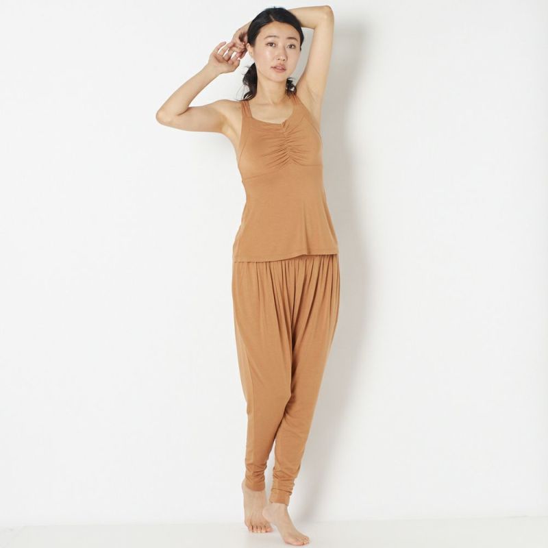 胸元のフロントギャザーがアクセントに効いたキャミソール。肩ストラップを太くし、背中をV字にすることで肩紐のずれ落ちを軽減させるつくりになっています。 裾はややフレアになっており女性らしいシルエットデザインです。優れたストレッチ性となめらかな生地感で肌当たりの良さが魅力のレーヨン生地で仕立てた、着心地の良いアイテム。取り外し可能なブラパッド付きなので、一枚で安心して着られます。熱を吸収・放出して快適な肌表面温度を保つ温度調節素材アウトラストを採用しています。