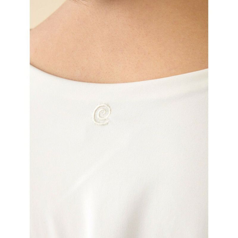衿部分のドレープで柔らかな印象のカップ付きトップス。