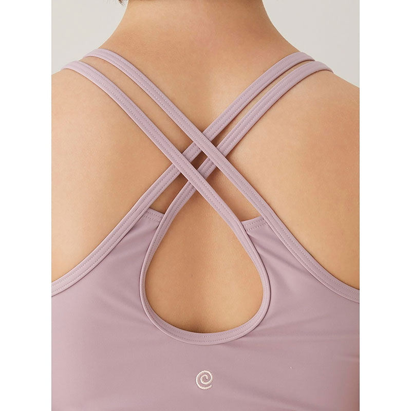 しっとりとした柔らかな肌触りで伸縮性抜群のsuria定番素材を使用した、カップ付きのキャミソールです。肩紐が細く2本になっており、安定感がありながらも肩周りを綺麗に演出します。