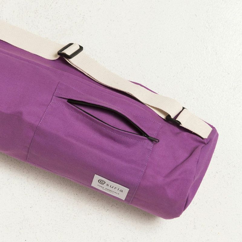 ナチュラル派に嬉しいマットバッグ。認証オーガニックコットンを用いたさらりとした優しい肌触りです。使いやすくなったポケットや、スリアのロゴが入り バージョンアップしています。ゆとりのあるサイズは、薄めのマットであればタオルや簡単な着替えなどを入れる事も出来ます。ストラップの長さは調節可能です。