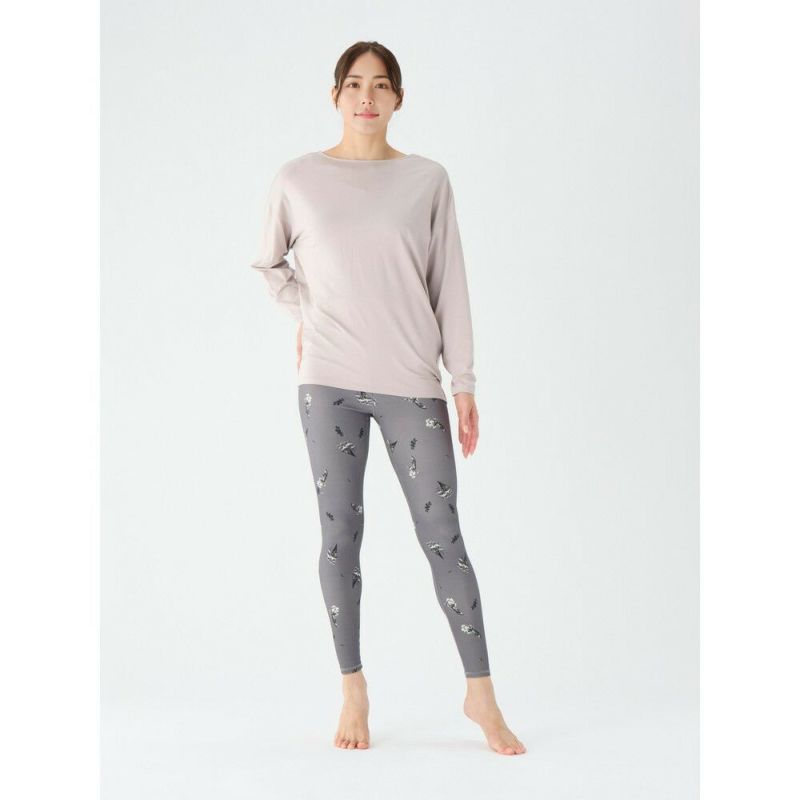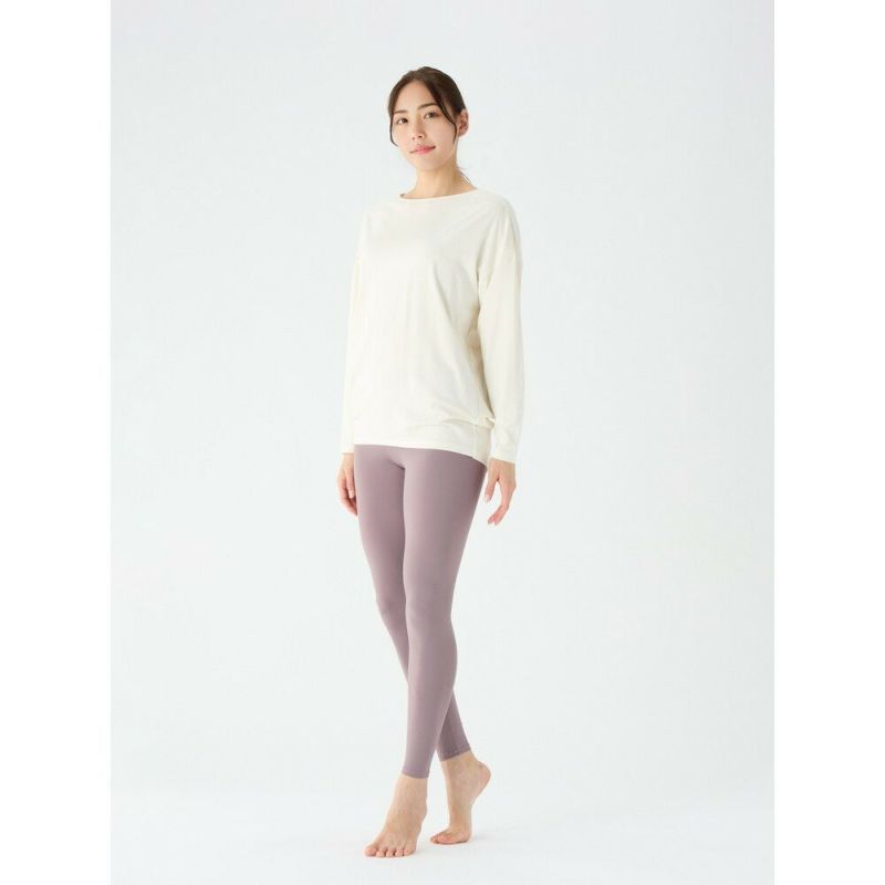 袖をまくってもしっかり止まり、窮窟にもならず深い呼吸をしながら安心して動けるウェア。長めの着丈でレギンス合わせのコーディネートがおすすめ。