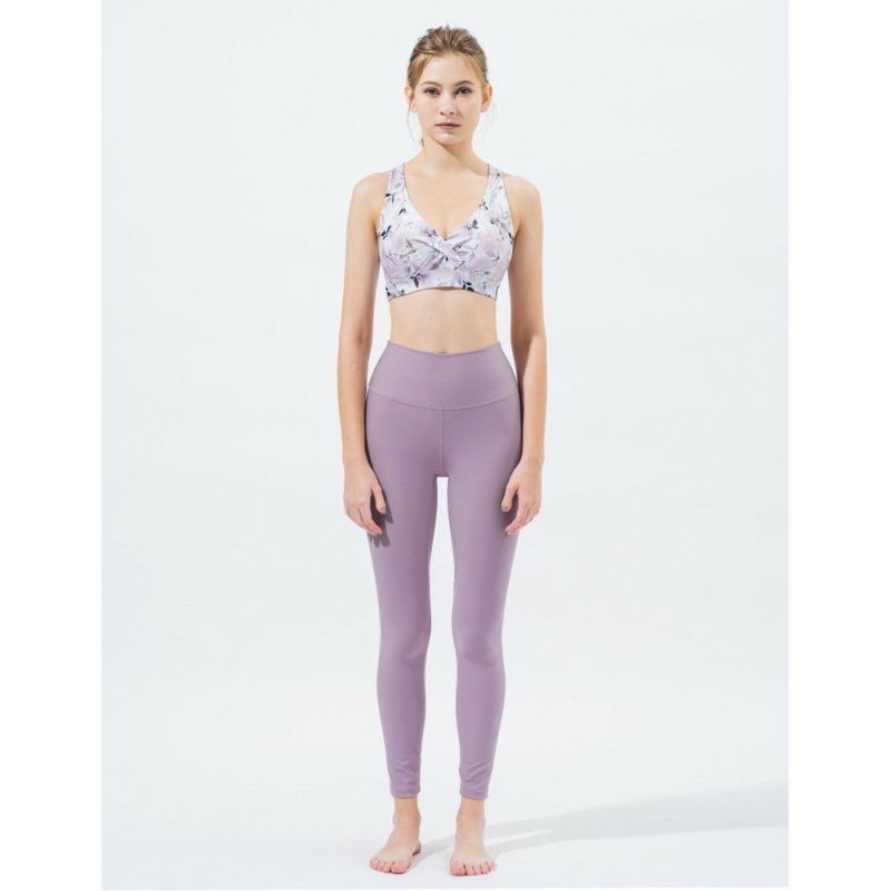 フィット感抜群、深めのVネックですっきりデコルテ見せができるブラトップ。イージーヨガオリジナルプリント柄で華やかな印象です。背中はバッククロスで動きを妨げない安定感のある着心地です。