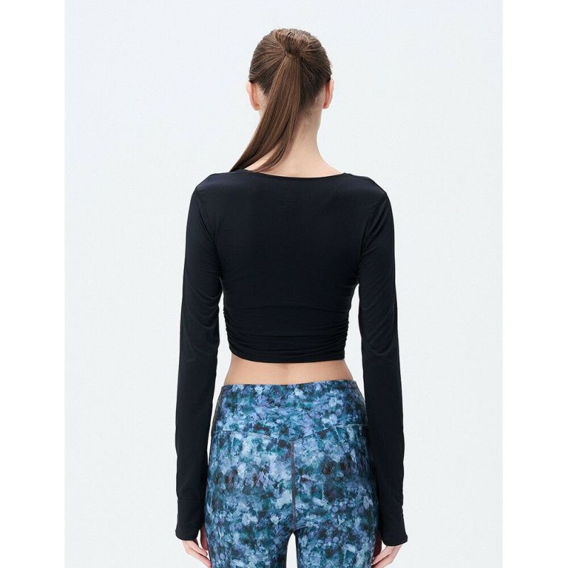 袖口に親指を通せるホール(穴)があることで、運動中でも袖がずり上がりにくく、安定。手の甲までしっかりカバーすることができるのでヨガマットや器具との摩擦防止、屋外の日焼け対策にも◎