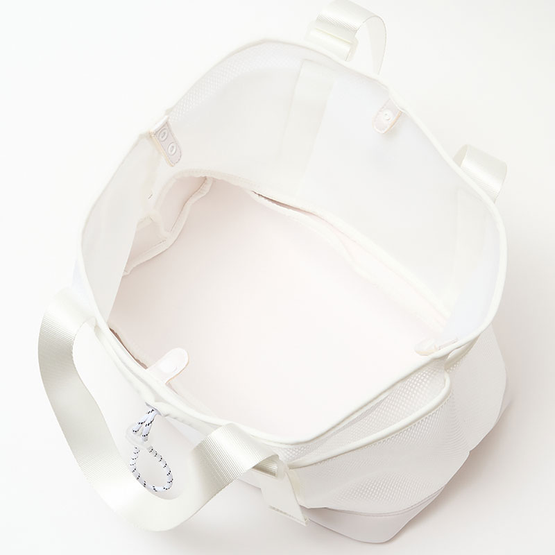 メッシュ素材の軽量バッグ。重さを感じない軽量素材で、ポケットがたくさんあるので持ち運びに便利なアイテムです。付属でおそろいのポーチ付きなのも嬉しいポイント。デザインはDOUBLE STANDARD CLOTHINGが監修しています。