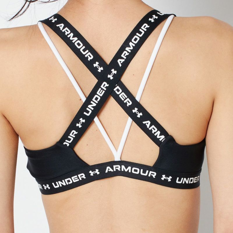 運動時に胸をしっかりとホールドしてくれる、ノンワイヤーのソフトカップブラトップ。艶のあるストレッチ生地で仕立てた、肌当たりの良い一枚です。ショルダーストラップとアンダーバストのゴムテープにはブランドロゴをプリントし、バックストラップのレイヤードデザインもポイント。クロスバックデザインで肩を回しやすく、ランニングやヨガなどあらゆるシーンで活躍します。