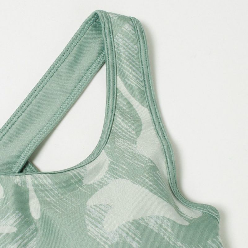 艶のあるストレッチポリエステル生地で仕立てた、しっかりとバストをサポートしてくれるブラトップ。肩周りがスムーズに動かしやすいクロスバック仕様で、トレーニングやヨガなどにもぴったり。フロントの内側には通気性の良いメッシュ切り替えが入っています。ブランドロゴの入ったバンドの内側は微起毛素材なので、汗でかぶれにくく肌当たりも優しいです。