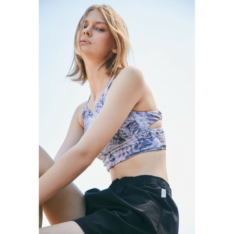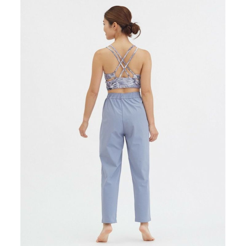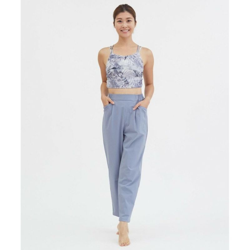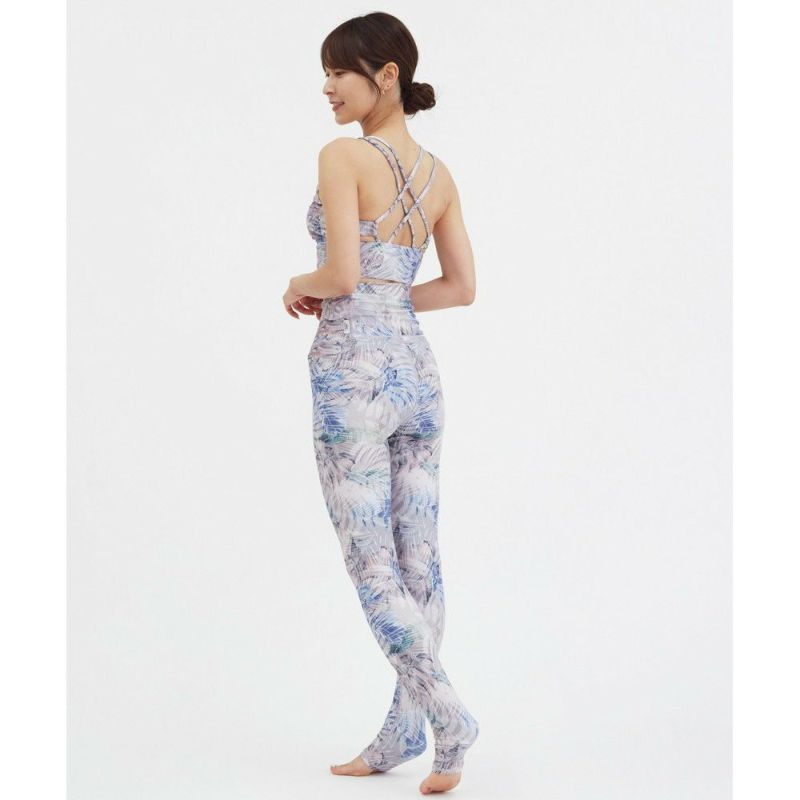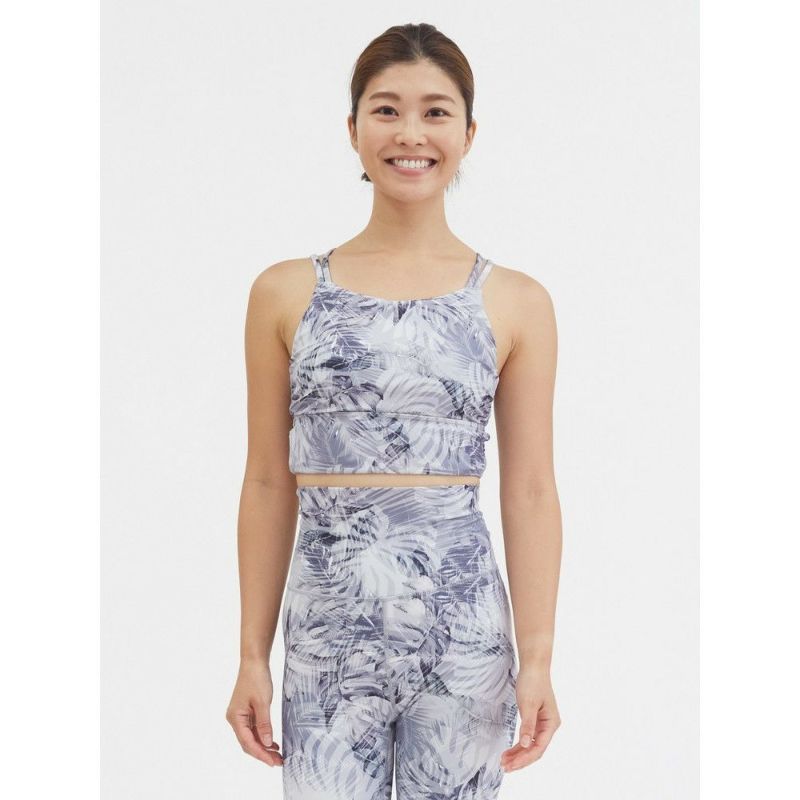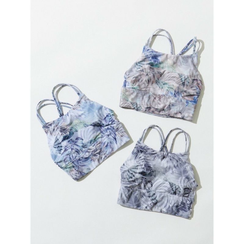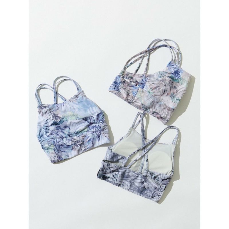 早朝の霧がかかったマングローブをイメージしたリーフプリント。バックのクロスデザインとしっかり胸をホールドするパターンでアクティブなワークアウトにも対応します。
