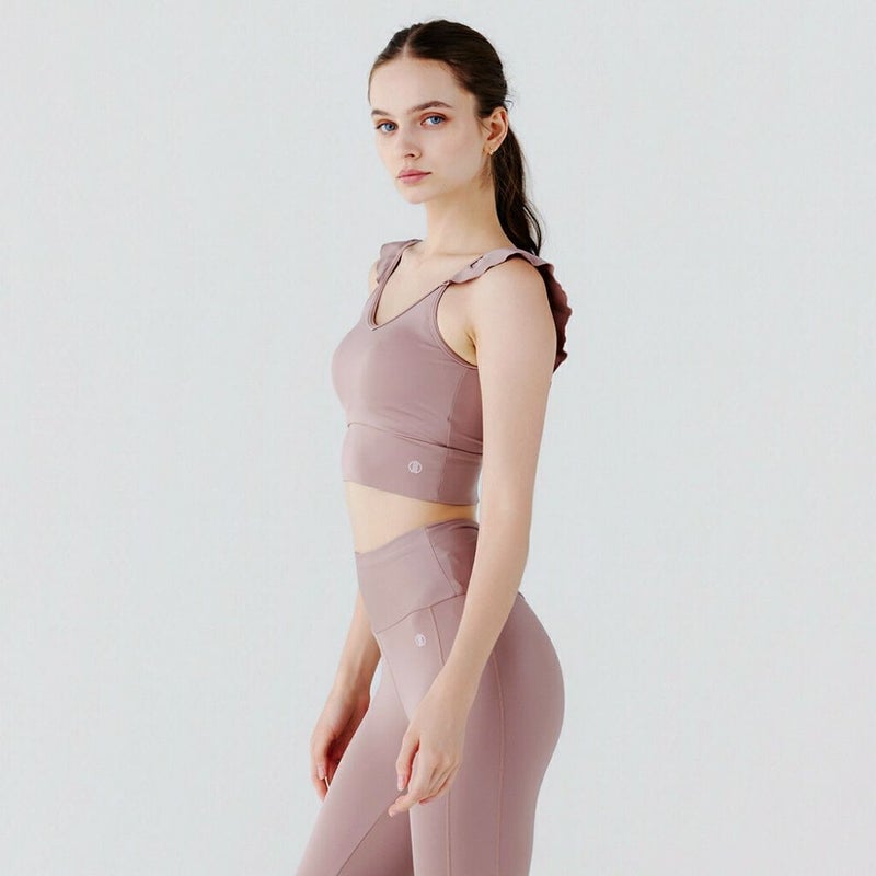 肩がフリルになった甘めディテールのブラトップ。Vネックが顔周りをすっきりと見せてくれます。柔らかくソフトなストレッチ素材で締め付け感が少なくなめらかな着心地です。デザインはDOUBLE STANDARD CLOTHINGが監修しています。
