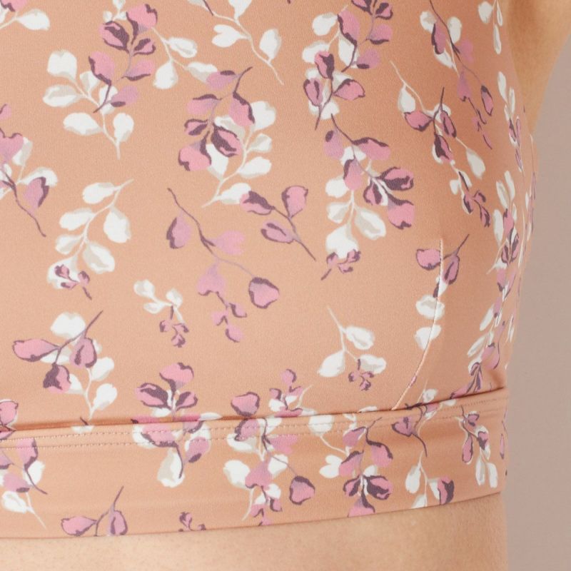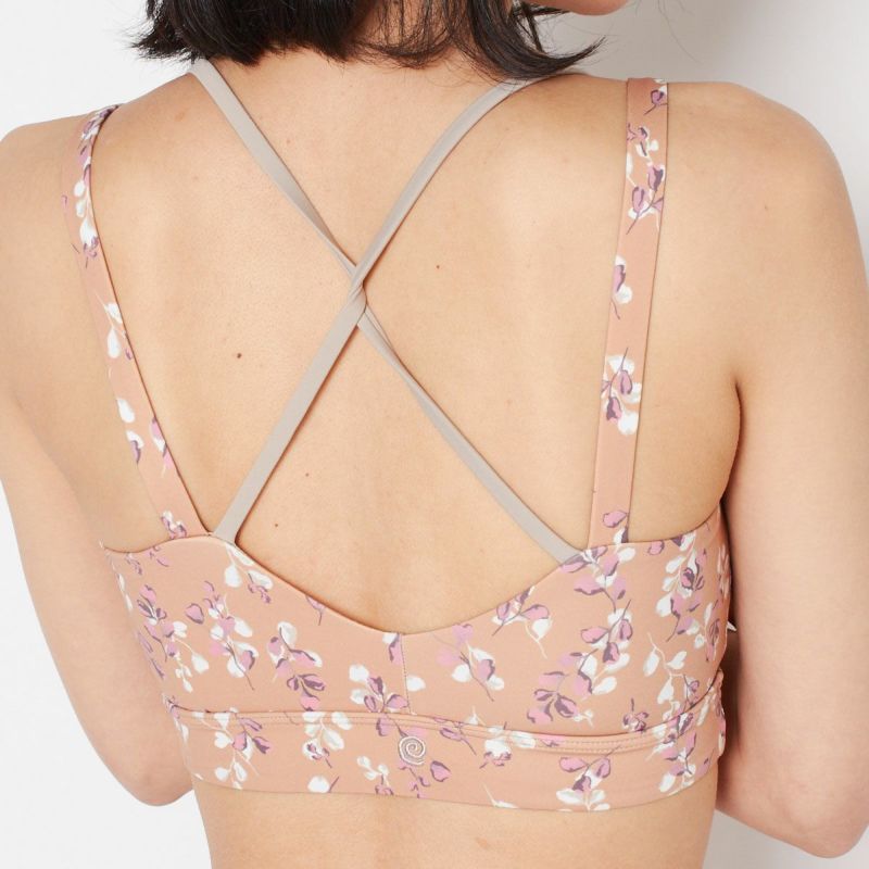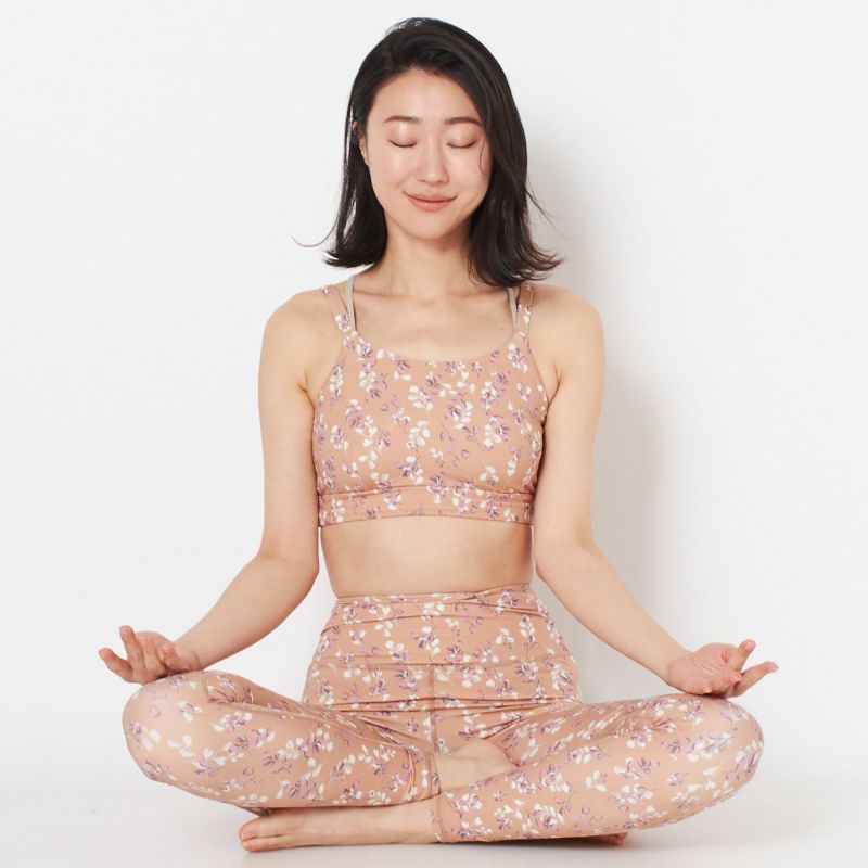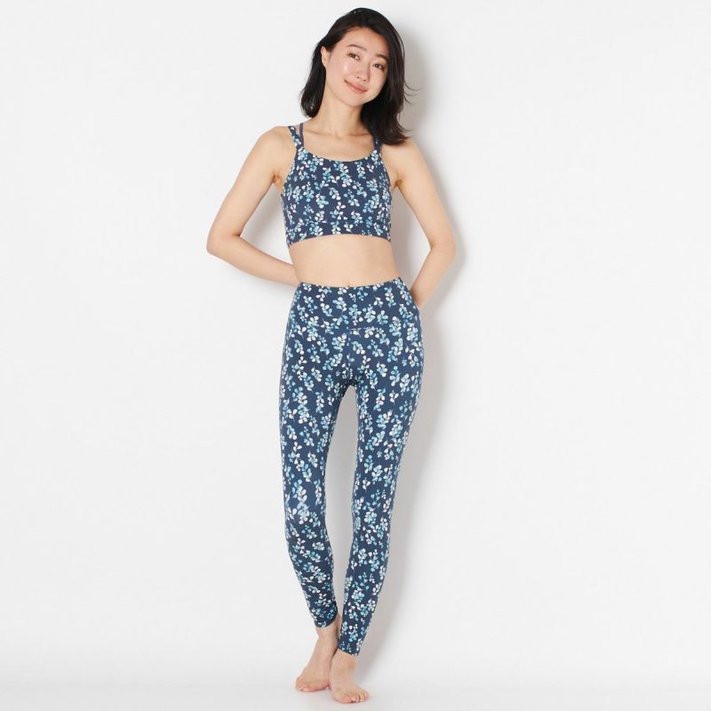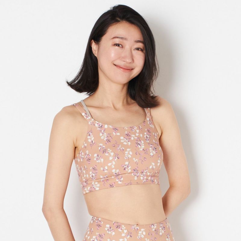 汗蒸れによる不快感を軽減してくれる、通気性と速乾性を備えたリーフプリントデザインのブラトップ。ストレッチ性に優れた滑らかなポリエステル生地で仕立てた、フィット感が心地よい一枚です。ブラカップは取り外し可能なので、お手入れがしやすく清潔に着られます。同デザインのレギンス(SUP571)とのセットアップもオススメです。