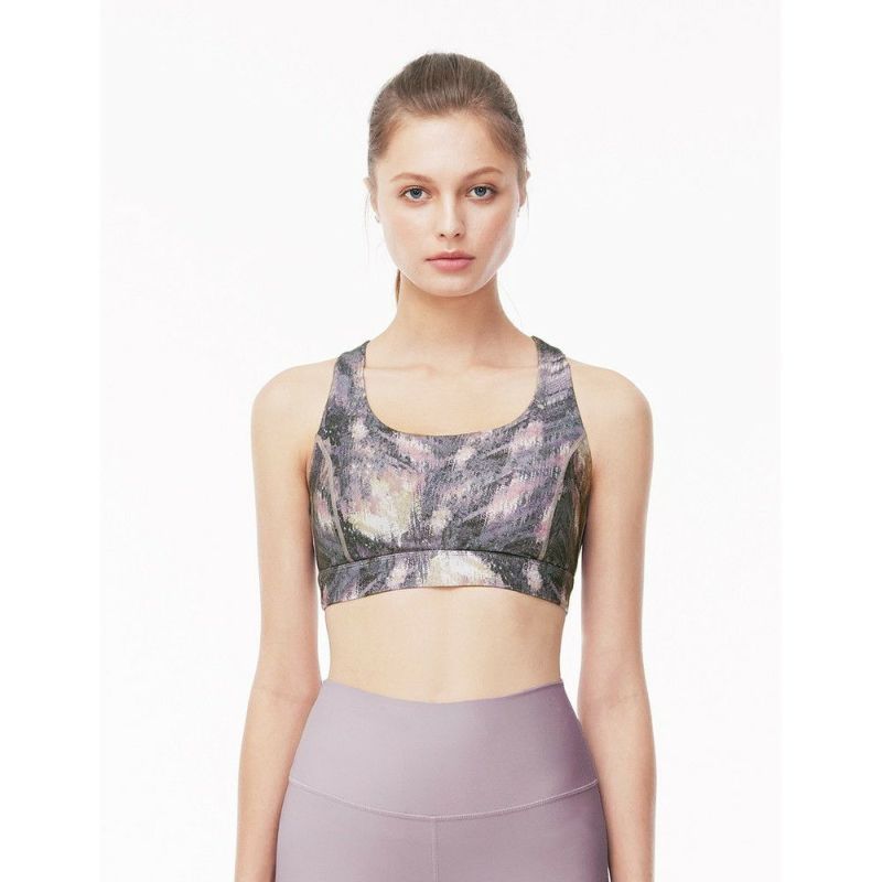 ズレない、ブレない、動きやすいワイドストラップ。幅が広めのストラップにバックはクロスデザインなので、自由自在、ノーストレスで動けます。ヨガだけではなくあらゆるエクササイズシーンで大活躍。機能性は勿論、伸縮性、吸水性、速乾性も優秀です。スタイリッシュなプリント柄でモード感UP。