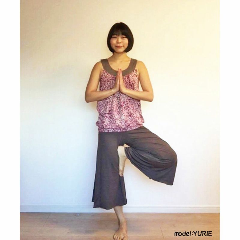 トップス丈は、ヨガのポージングで、お腹が出ないように長めに取っています。