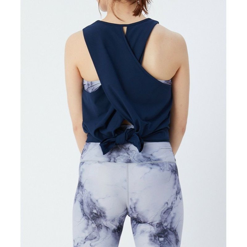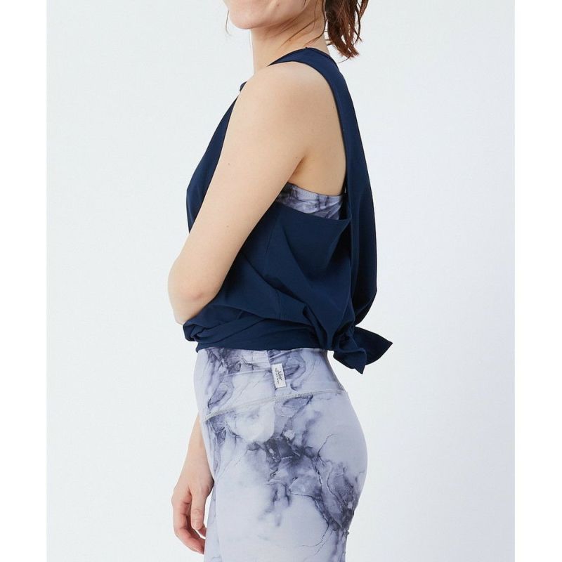 バックのスリットが動くたびに揺れる、美しいデザインです。後ろのスリットを結ぶとスッキリとした縦長シルエットになり、逆転ポーズやアクティブな動きにも対応します。