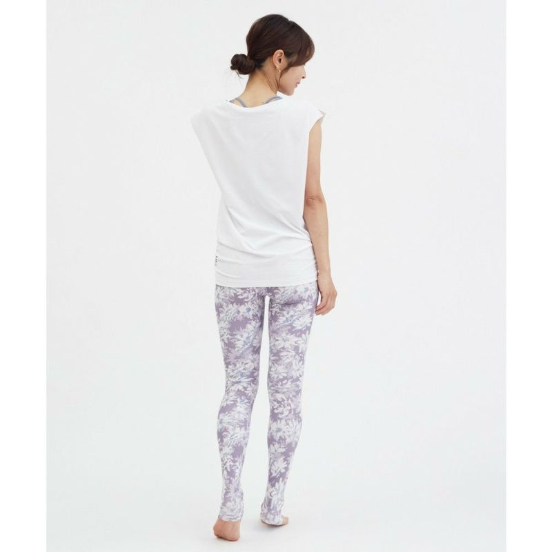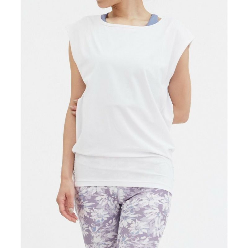腰のフィット感で逆転のポーズも安心、肩のスリットで腕が上げやすい、など細部のディテールを工夫し初めてヨガをする方にも快適に動いてもらえるようなデザインにしています。さらにお尻が隠れる着丈は動いていても安心感があります。