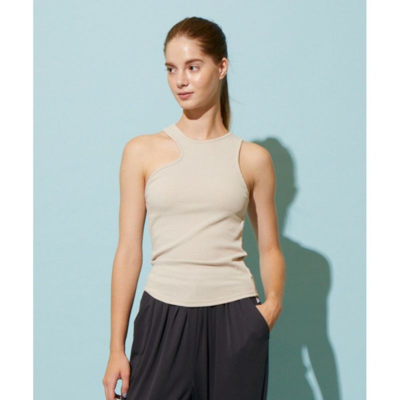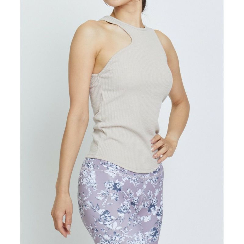 ジュリエ人気のリブ素材にスモークカラーがラインナップ。パット付きのアシンメトリーなタンクトップはデイリー使いにも便利な1枚です。スパンの効いたリブ素材はよりアクティブなシーンにも対応できます。