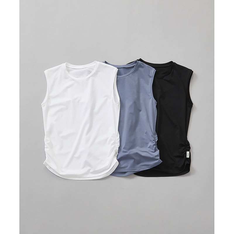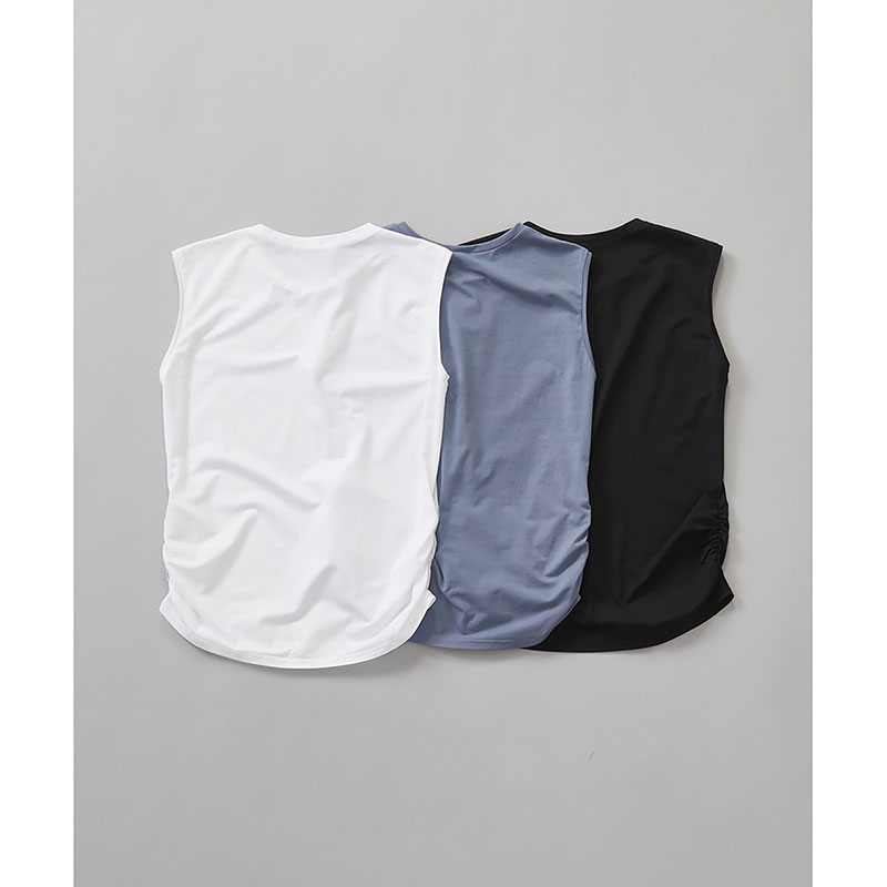 昨年大好評だった人気商品が、今年は新色で再登場!優れたストレッチ性・速乾性・UVカット性に 加え、さらりと快適な肌ざわりで、暑い季節にも心地よく着られる高機能素材を使用。ほどよく体にフィットしながら、気になる二の腕をすっきり見せてくれる絶妙なサイジングにこだわりました。裾のサイドギャザーがさりげないアクセントとなり、シンプルな中にもおしゃれ感をプラス。カジュアルなボトムと合わせるだけで、こなれた着こなしが叶う一枚です。