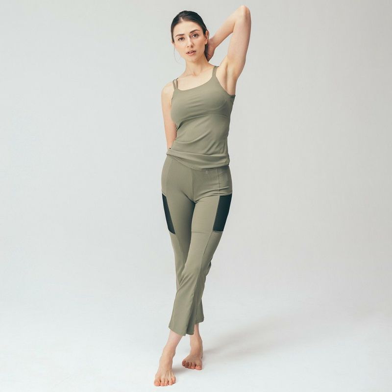 なめらかな肌触りのリブキャミソール。少し長めの丈で腰にもぴったりとフィットします。ダブルクロスで肩周りを華奢に見せ、背中はチュール切替でデザインのある1枚。カーキは黒のメッシュを使用した配色デザインです。華やかなイエローと、大人ベーシックに着ていただけるカーキ、ネイビーの3色展開。デザインはDOUBLE STANDARD CLOTHINGが監修しています。