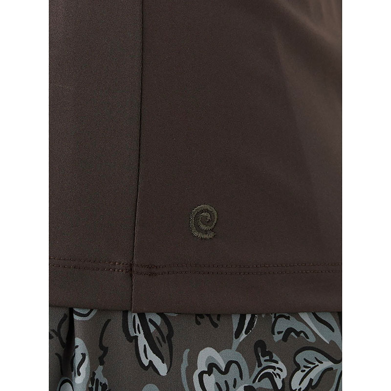 アメリカンスリーブが今年らしいデザインのカップ付きノースリーブです。左の首部分のボタンで開閉して着脱する仕様で、ボタンはスポーツウェアではあまり使わない高級感のある貝ボタンを、敢えて採用しています。動きを邪魔しないように全体的にコンパクトなサイズ感にしています。
