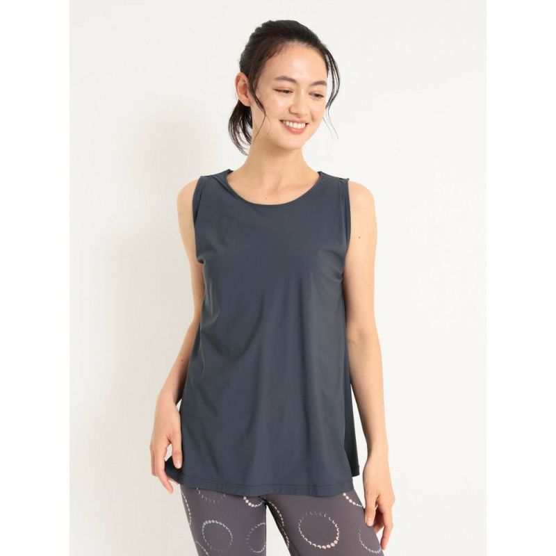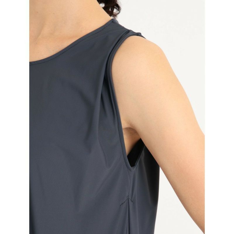 首、肩周りはスッキリ、裾にかけてAラインに広がったノースリーブは、おしりが隠れる安心丈。月柄のソフィーレギンスと合わせるのがおすすめです。