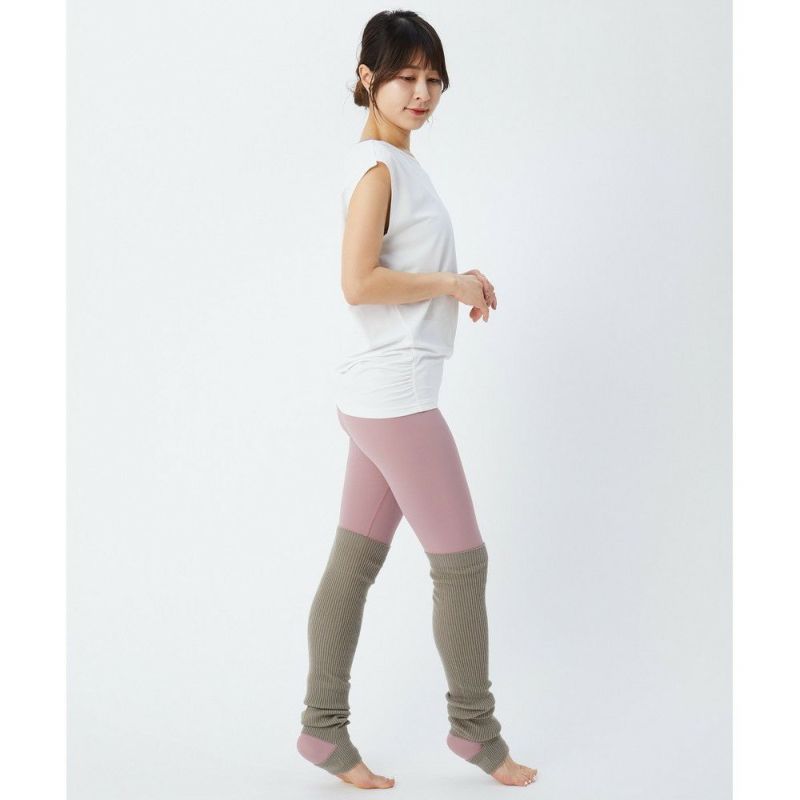 保温性を保ちつつお手入れをしやすいように、ウールとアクリルの混率にこだわっています。つま先とかかとが開いているので、着用したままヨガをしても滑らず快適です。もも上までの長めの丈で暖かく、くしゅくしゅとたるませてもかわいい着こなしになります。肌寒いスタジオや、リモートでのワークアウト、デイリー使いにと、幅広くお使い頂けます。(横幅10cm 長さ73cm)