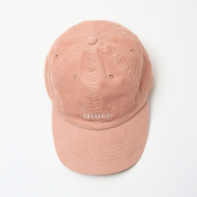 LITHEEのロゴを刺繍したコーデュロイキャップ。デイリーにも使いやすいベーシックなキャップです。後ろのベルト部分でサイズ調節が可能です。くすみカラーが可愛いピンクはコーディネートの差し色にもおすすめです。