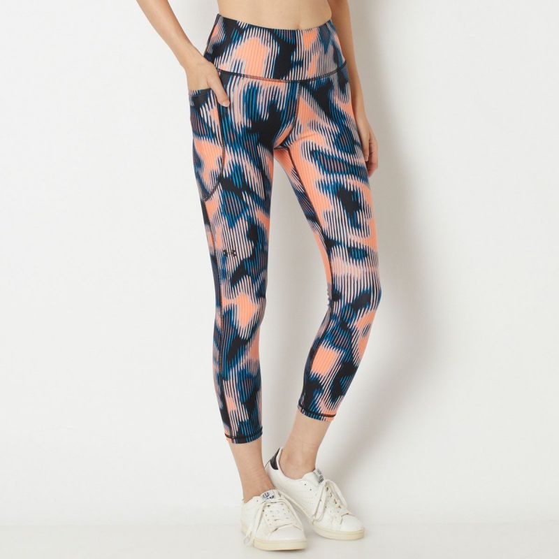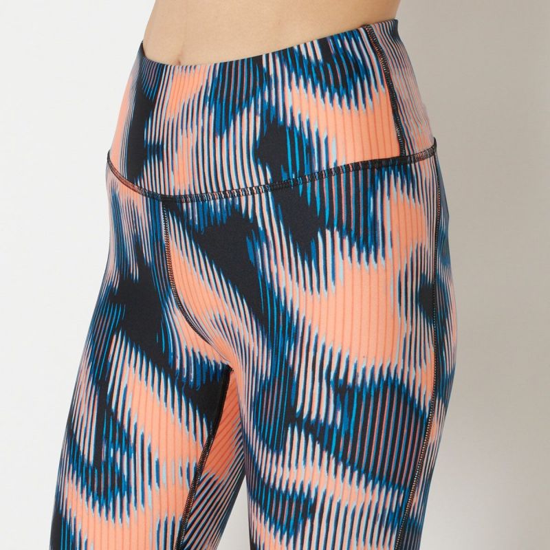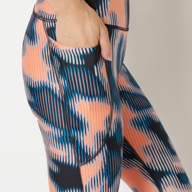 鮮やかなミックスカラーデザインがランニング気分を盛り上げてくれる9分丈レギンス。ストレッチ性が高く、さらっとした生地感で肌当たりの良い一枚です。ウエスト部分の切り替えを広めにとることにより、お腹に食い込まずリラックスした履き心地を実現。右ももにウォーターボトルが入るポケット付き。