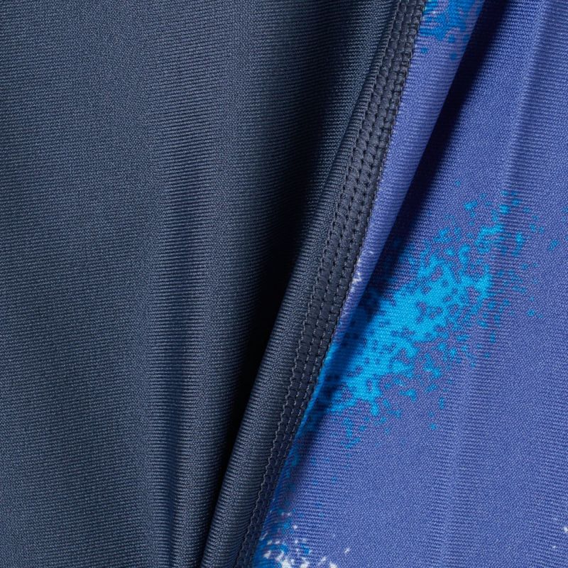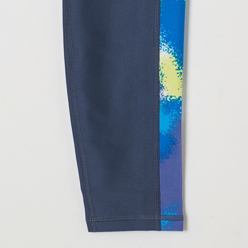 ミックスカラーデザインのサイド切り替えが目をひくフルレングスレギンス。一枚でも安心な厚みのストレッチポリエステル生地を使用しています。足をすっきりと見せてくれる引き締め効果を発揮しながら、ウエストの切り替えを広めに取り、お腹周りの締め付けを軽減。同デザインのトップス(1384680B)とのセットアップコーデもオススメです。
