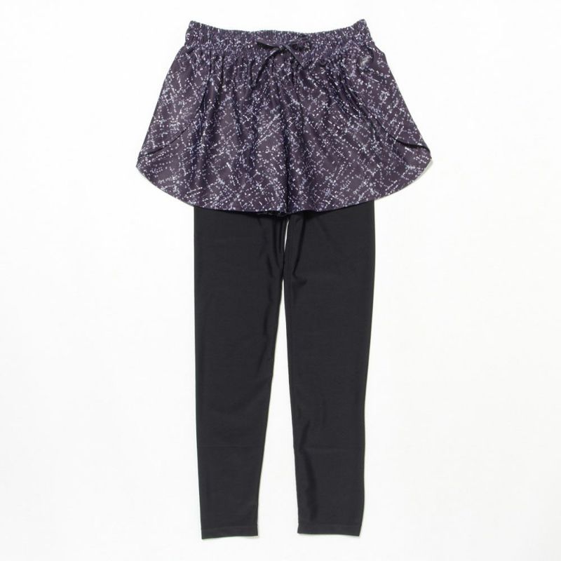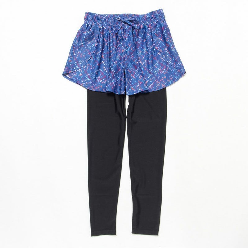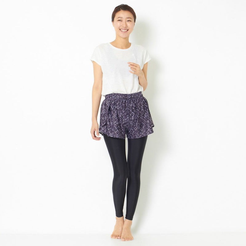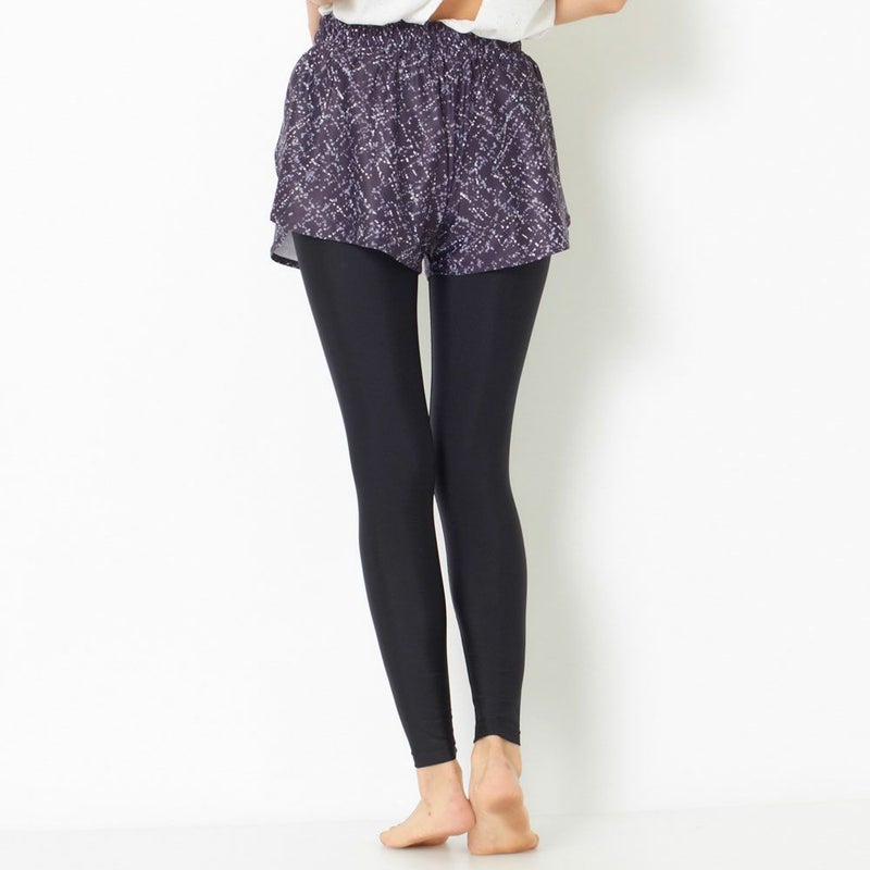 スカート見えするフレアシルエットのパンツと、シンプルなレギンスのセットアイテム。水に濡れても安心な水陸両用の素材を使用しているので、ホットヨガ・サップヨガはもちろん海やプール、フェスなど、マルチに活躍します。レギンスのウエスト部分あしらわれたブランドロゴもポイントです。セットではもちろん、それぞれ単品でもお使い頂けます。フレアシルエットが可愛らしいデザインで、またヒップ周りを隠してくれるので女性に嬉しいアイテムです。