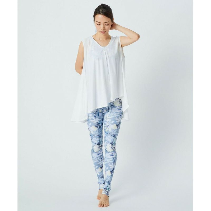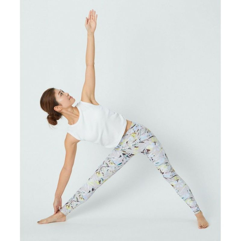 透けるように繊細なニュアンスのフラワーモチーフの新作プリント。水陸両用素材で、ホットヨガやサップヨガ、スイム、ランなど様々なスポーツシーンで活躍する1枚です。ウエストラインや股ぐり、ワタリなどを立体裁断し、何度も着用し実際に動いて作るジュリエのレギンスの快適な着心地をぜひ実感してください。