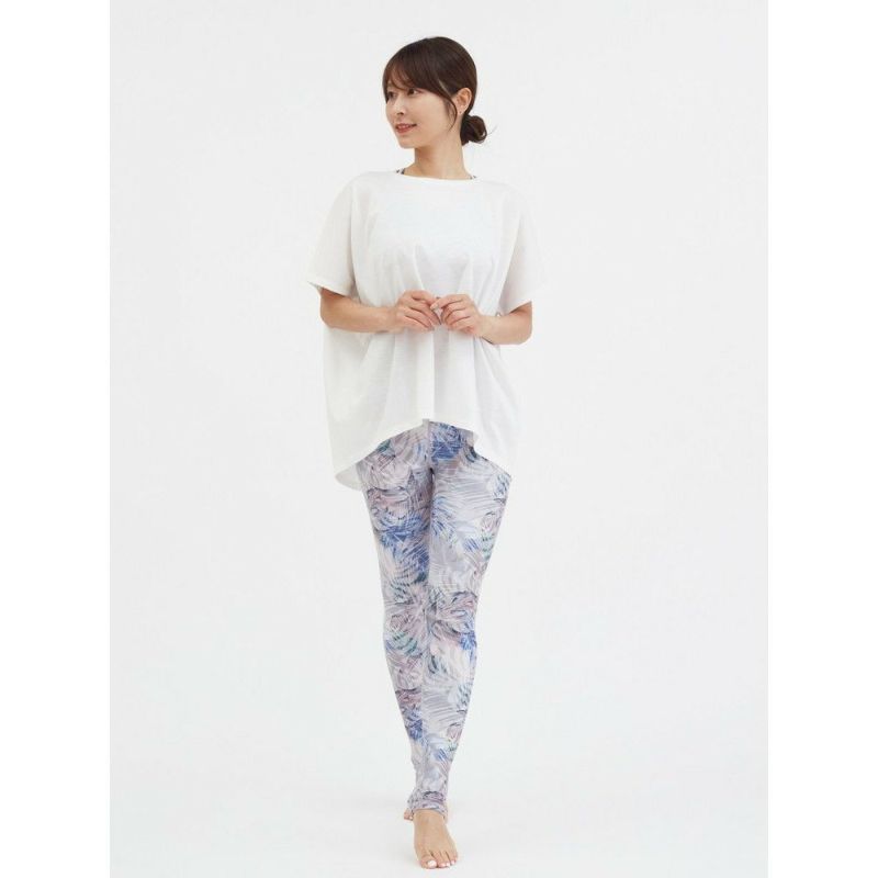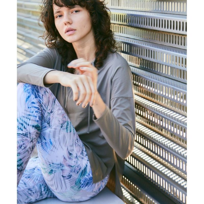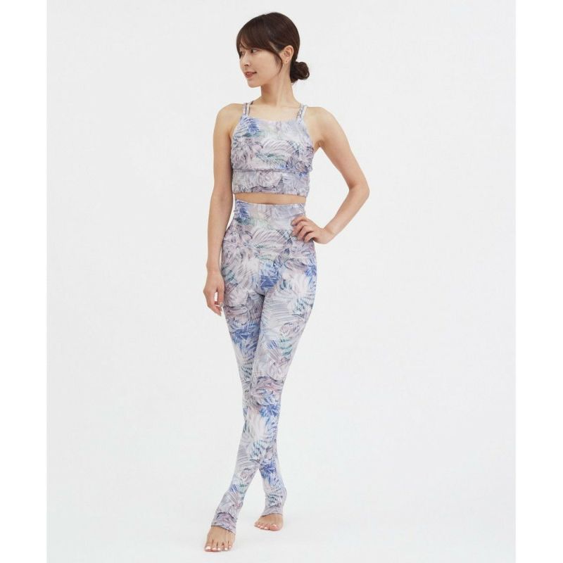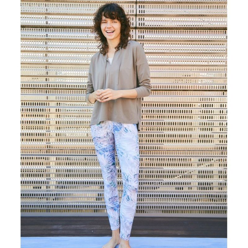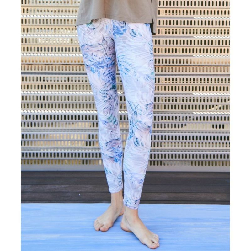 早朝の霧がかかったマングローブをイメージしたリーフプリント。安心感のあるスーパーハイライズのレギンス。お腹周りを気にすることなく動けるのでヨガやワークアウトに集中できます。