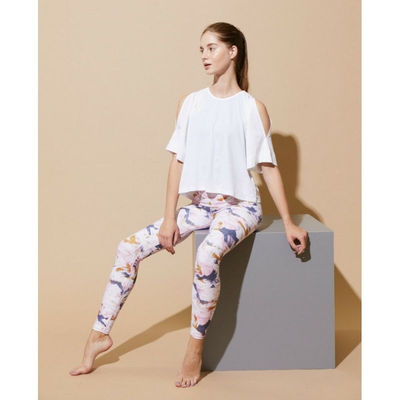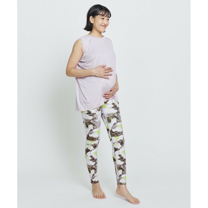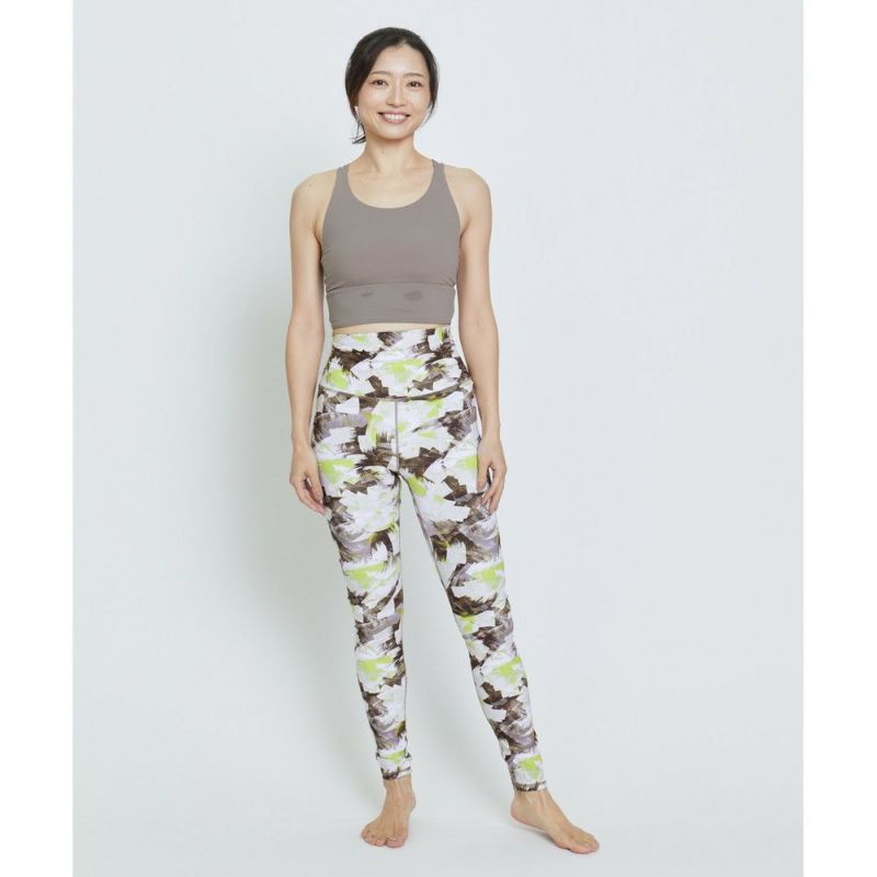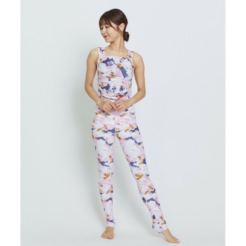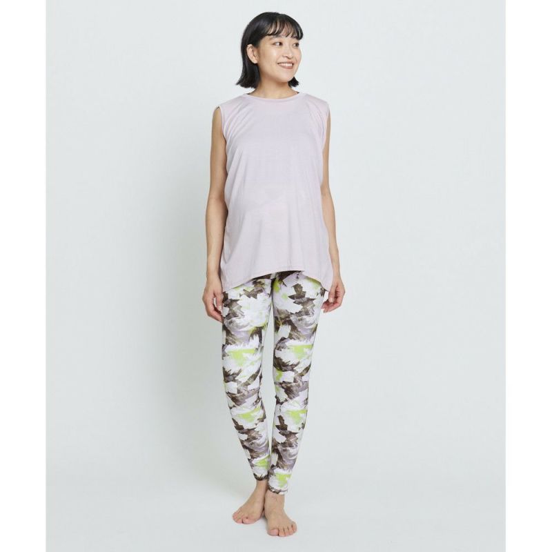 【HOTYOGA】【SWIMMING】かすれた筆で描いたデザインをプリントに。ビーチやリゾートシーンにも映えるリーフプリントはラッシュガードとしての着用もおすすめです。