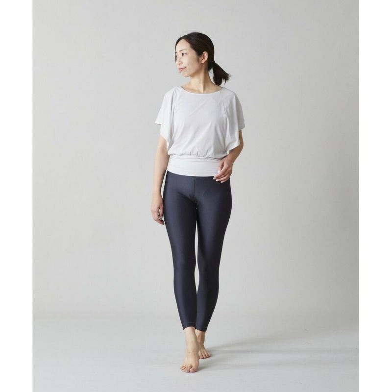 柔らかでストレッチ性の高いベーシックレギンス。少しツヤ感のあるとても柔らかで履き心地の良い機能素材を使用しています。初心者から上級者の方まで幅広くご愛用いただける、やや股上の深いベーシックなデザインです。ジュリエ定番のYOGAFITレギンスよりも、素材が軽く柔らかいため、しなやかなフィット感があり動きやすいです。伸縮性の高い素材のため、0(S~Mサイズ)・1(M~Lサイズ)の2サイズ展開となっています。吸水速乾、UVカット効果もある機能素材のため、デイリーにはもちろん、ホットヨガやラン、ピラティスなど様々なワークアウトにも最適です。