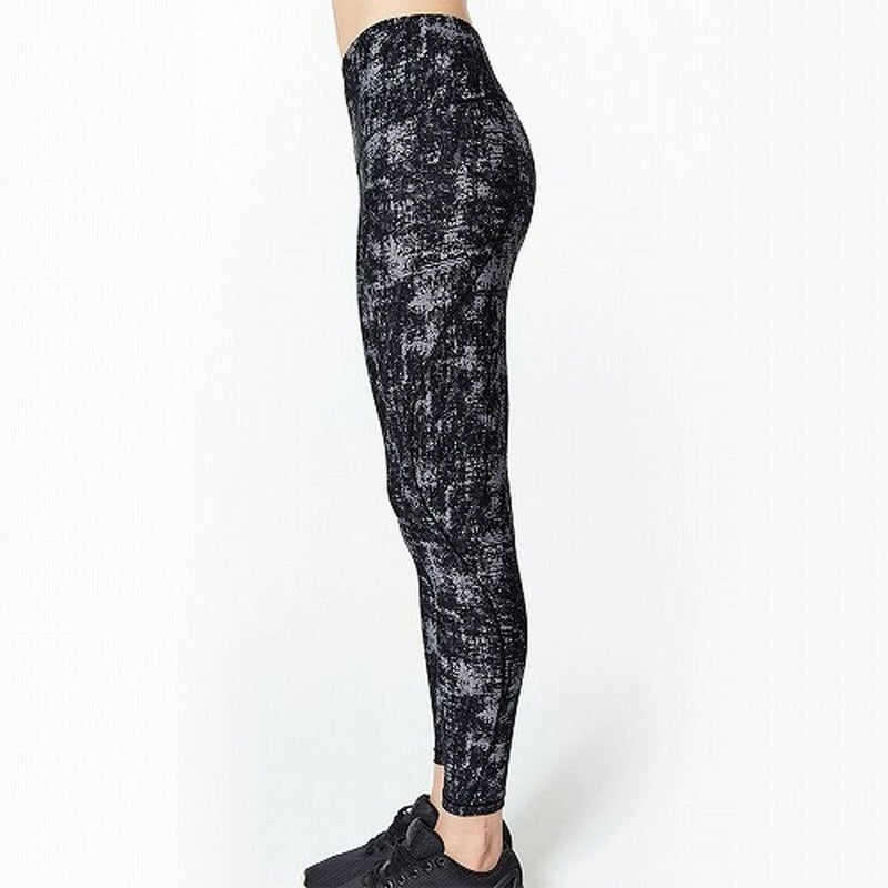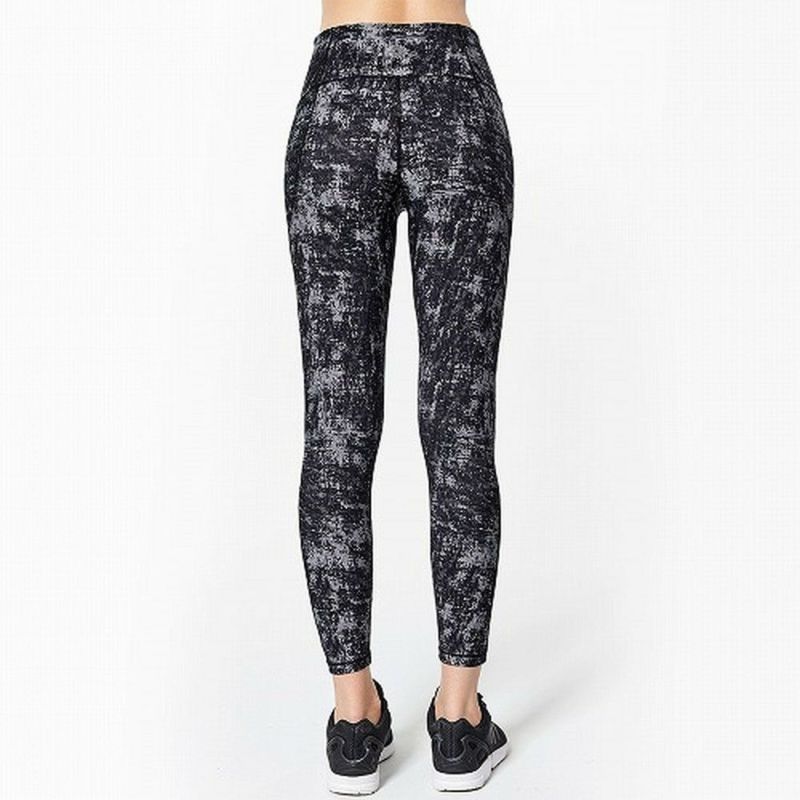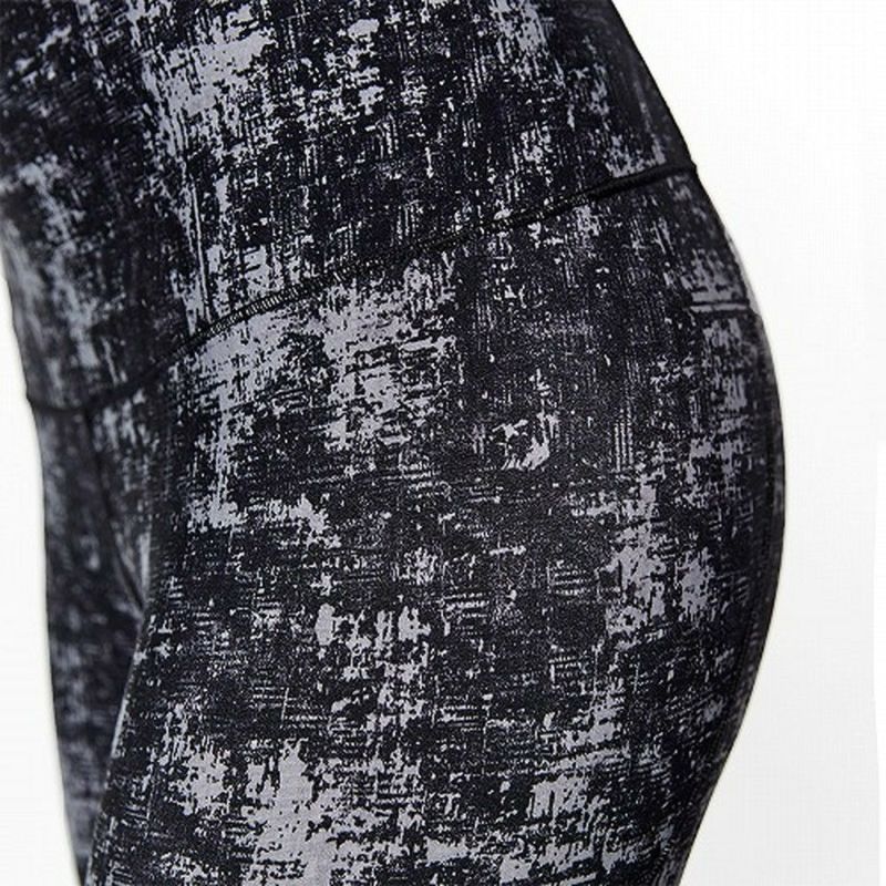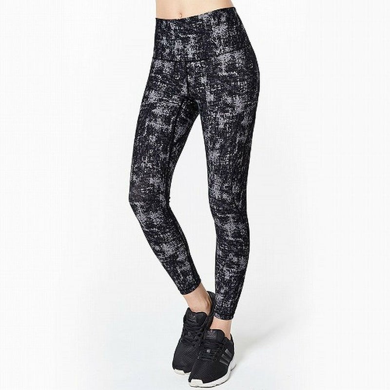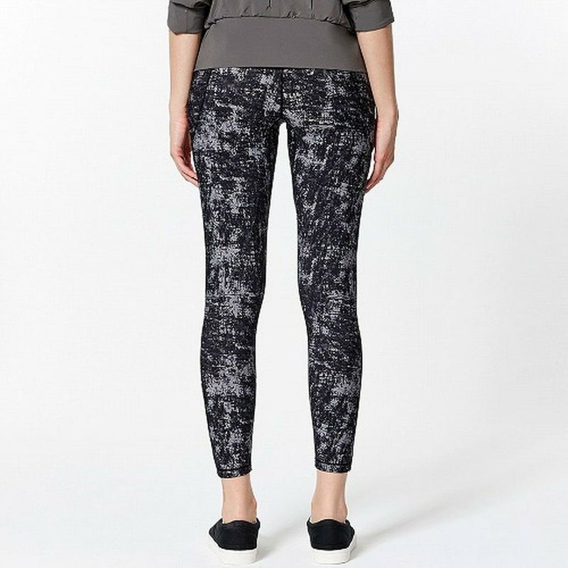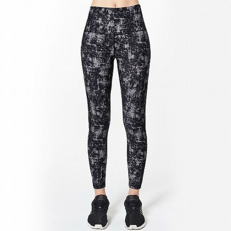 サイドの切り替えライン、フィット感抜群のフルレングス丈レギンスです。ハイウェストラインだから反りも前屈も安心。ホールドされているに驚くほど軽やかな履き心地です。吸水性、速乾性も優秀。ブラック&グレー系のプリント柄は間違いなしの定番デザイン。