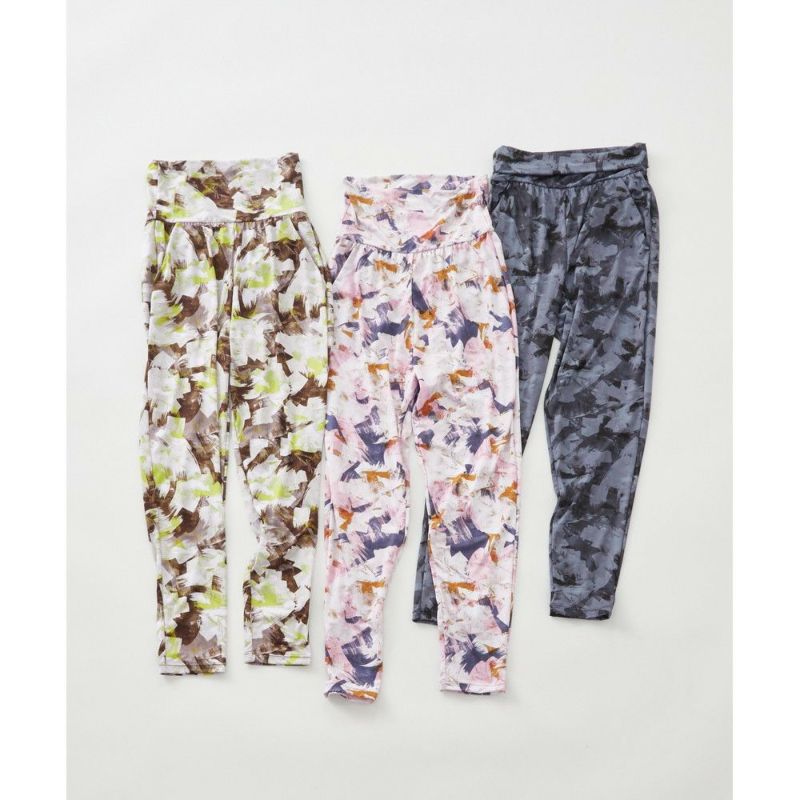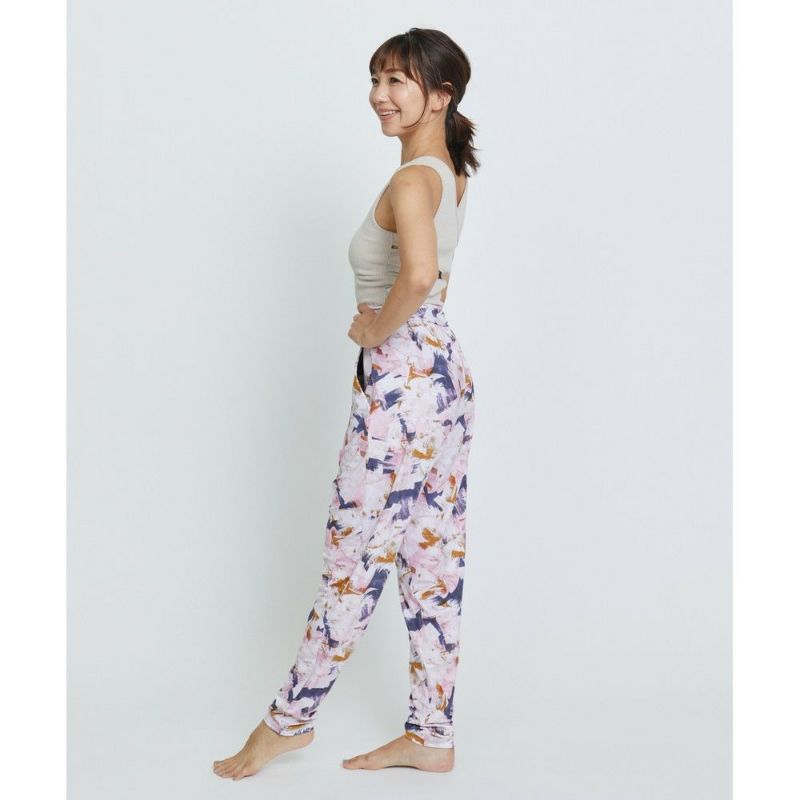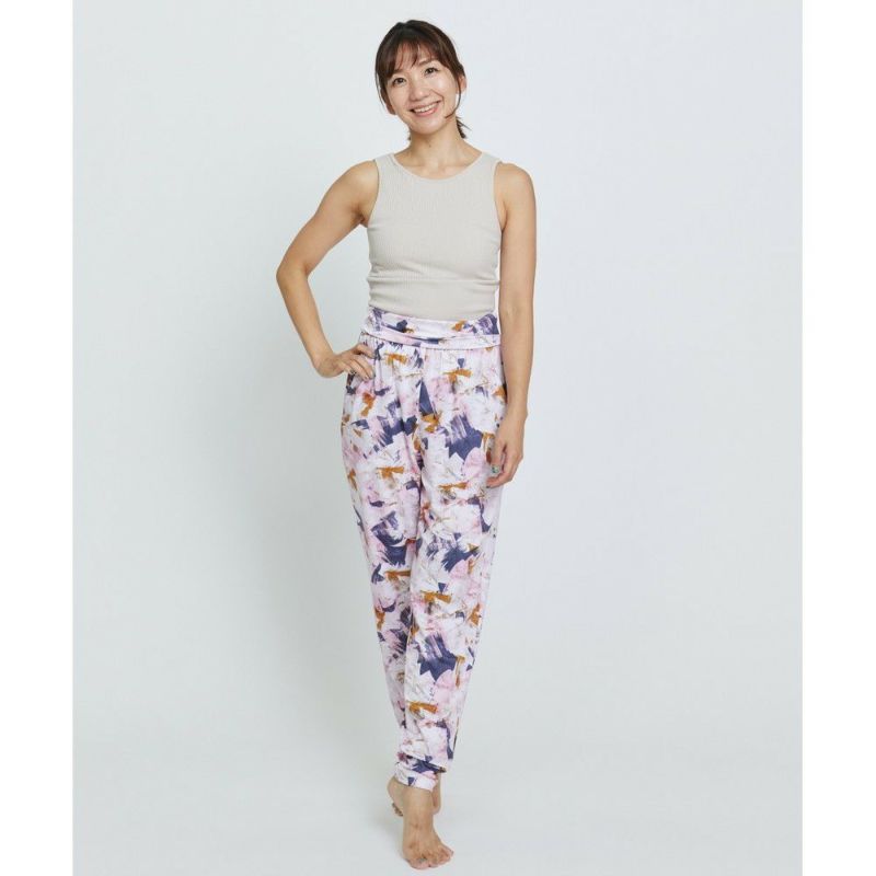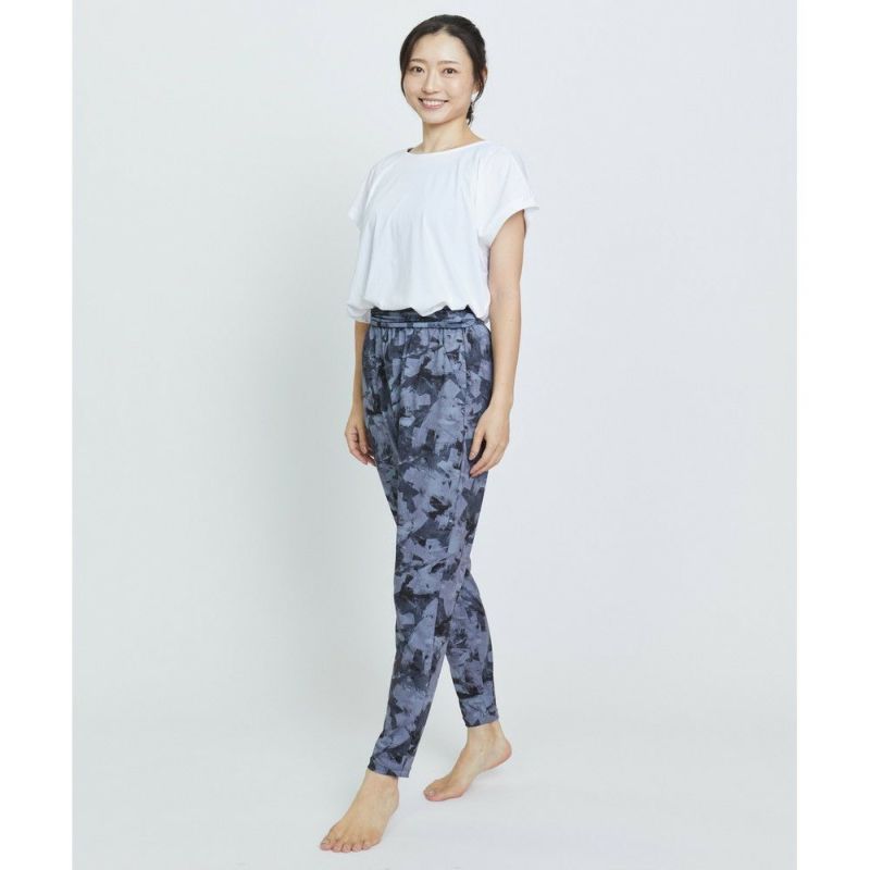 定番のデザインのギャザーパンツ。レギンスより薄く軽い素材を採用し、足にまとわりつかず風通しが良いのが特徴。ウエストの折り返しデザインはお腹周りに安心感があり好評です。速乾性があるので、水際シーンにも大活躍します。