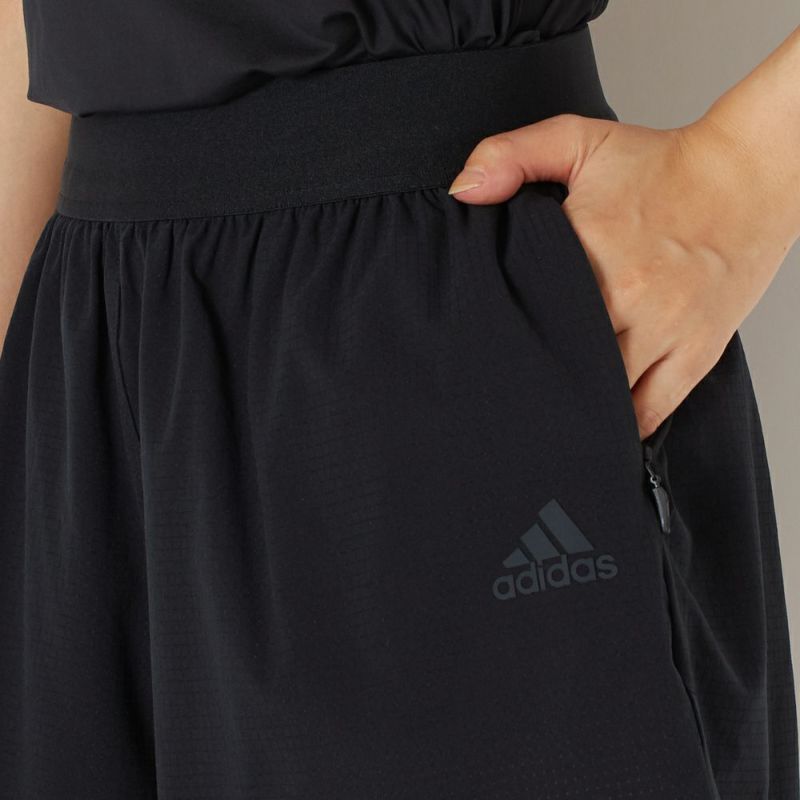 ストレッチメッシュ素材で仕立てた軽い履き心地のランニングショーツ。ラインを拾わないゆったりめのシルエットで、通気性の良い一枚です。ウエスト部分は幅広のゴムテープを使用しているので、締め付け感なく着られます。左サイドには小物が収納できるファスナーポケットが付いているのも嬉しいポイントです。
